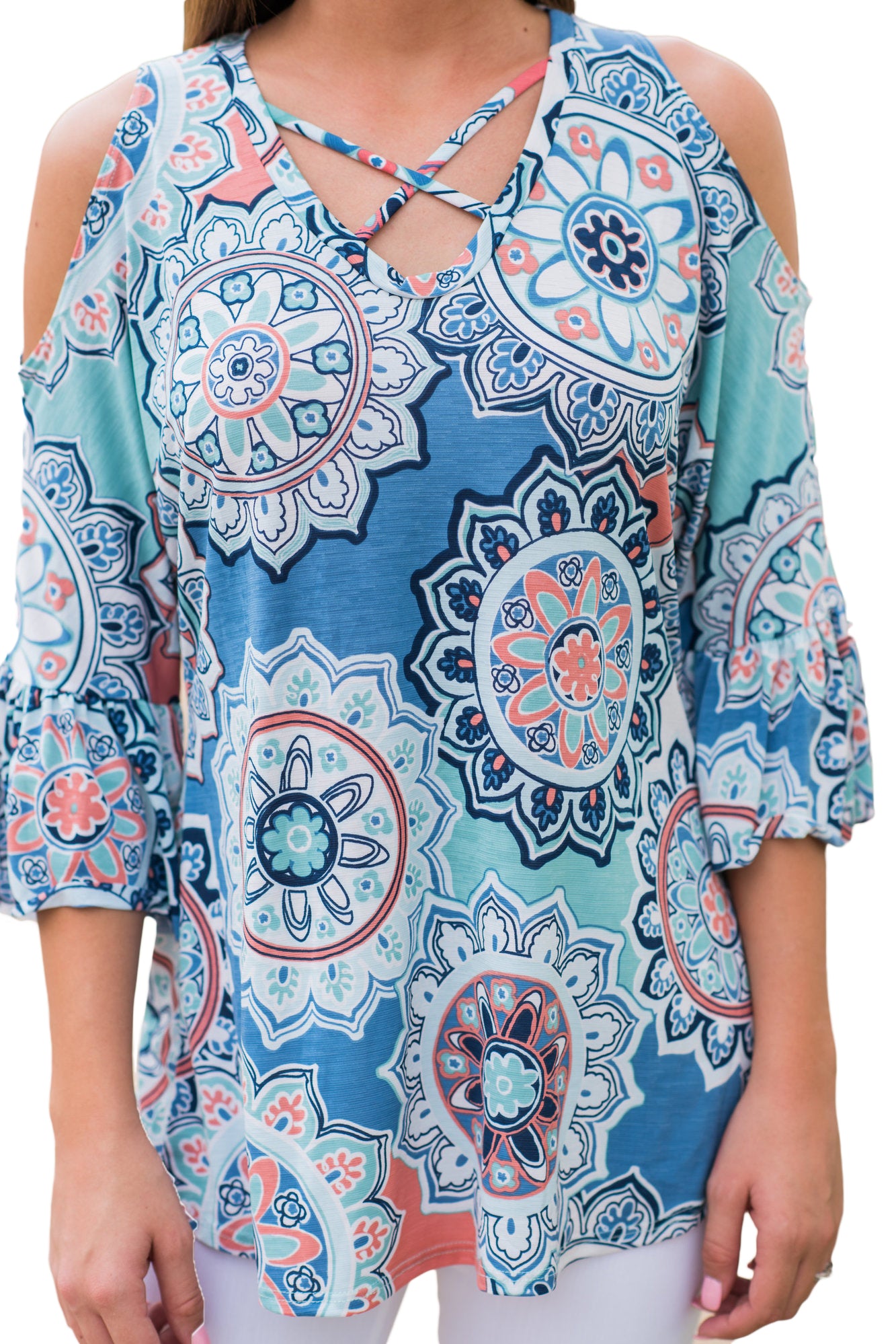 We saw how much you loved this print in so many other styles. So, when we found it in in this super cute casual top, we just knew you were going to need it! This top is literally the best of all things! The cold shoulder cut outs and the strappy neckline are the perfect details!
