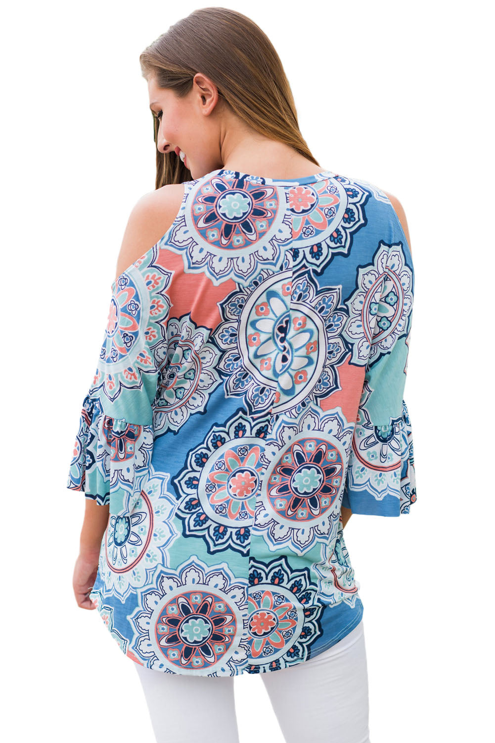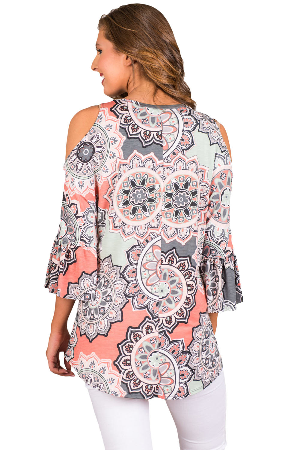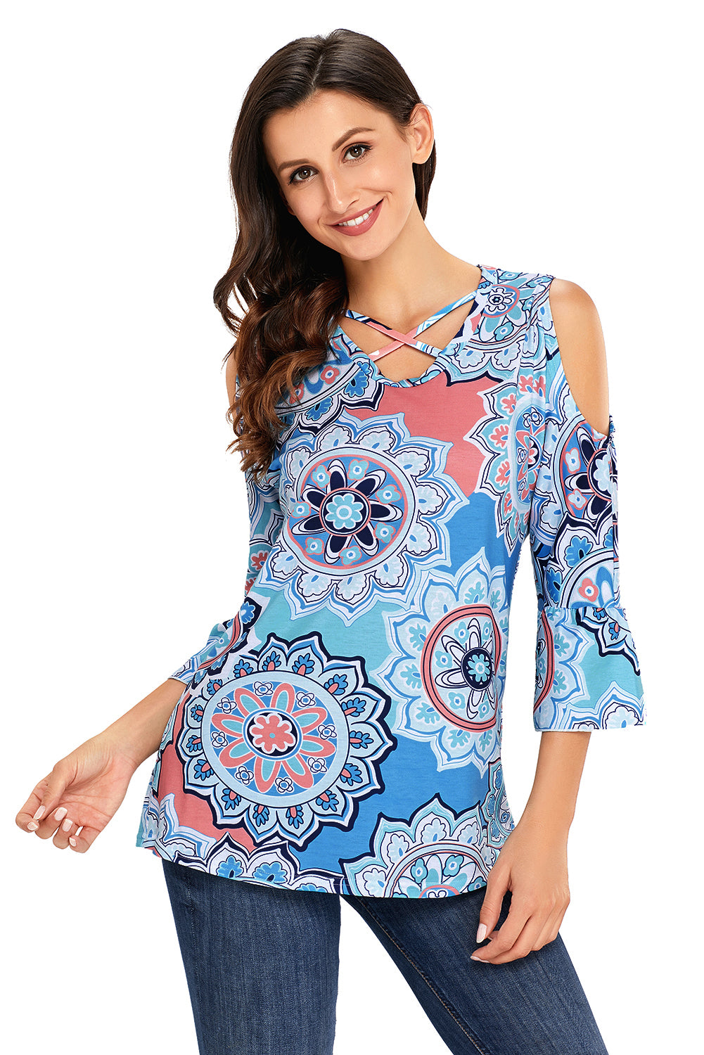 - Details with gorgeous floral print, cold shoulder and criss cross neck