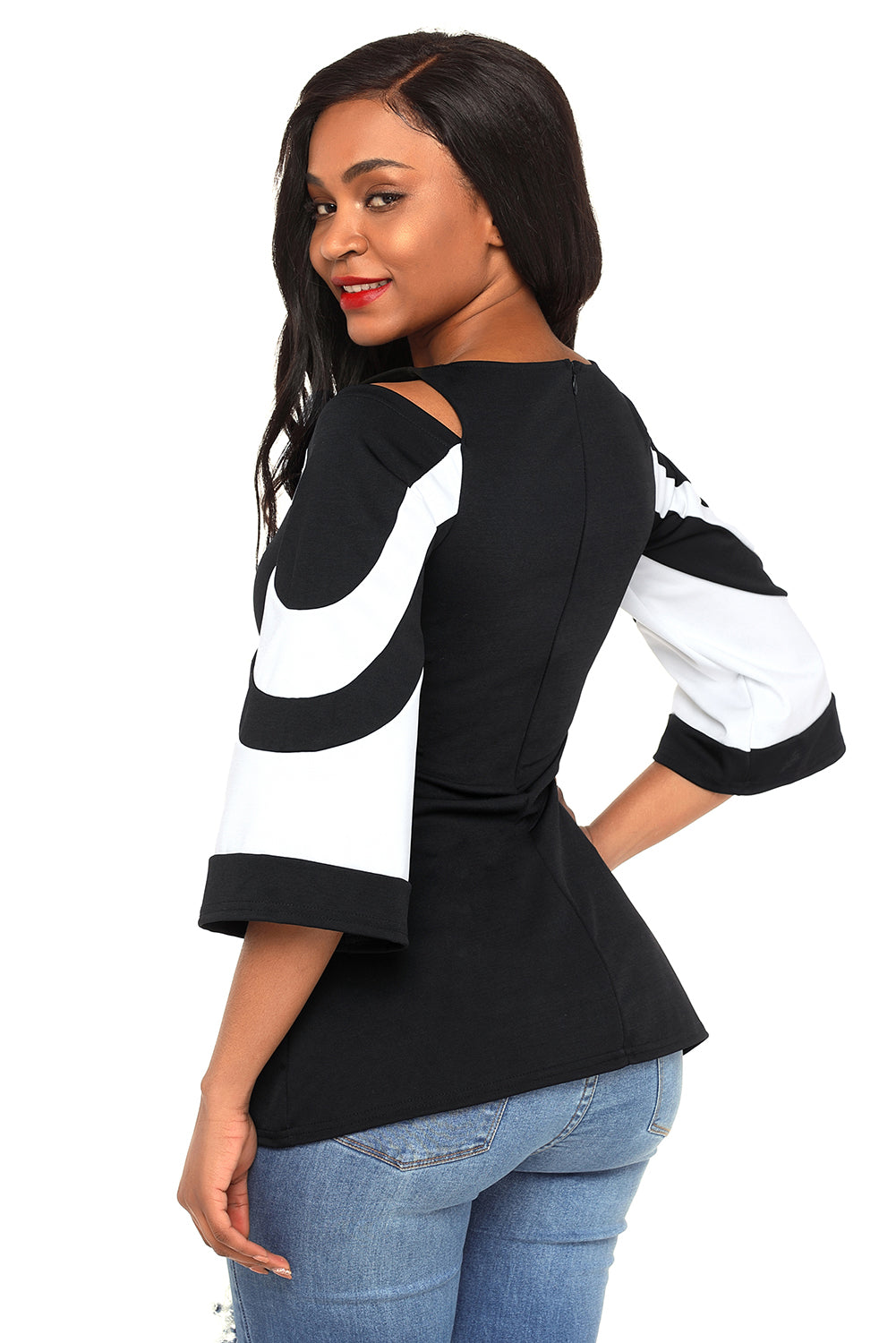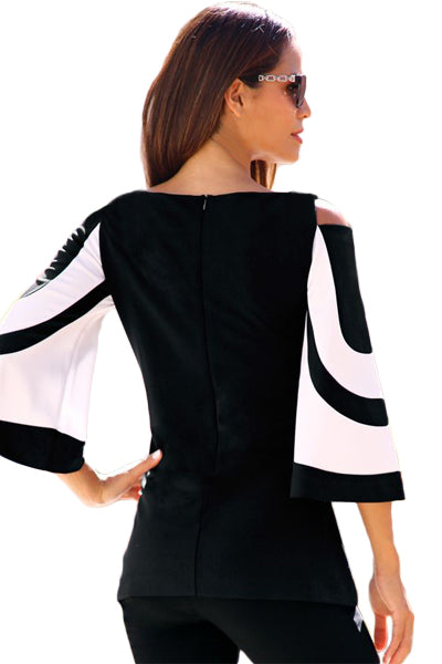 Colorblock Bell Sleeve Cold Shoulder Top