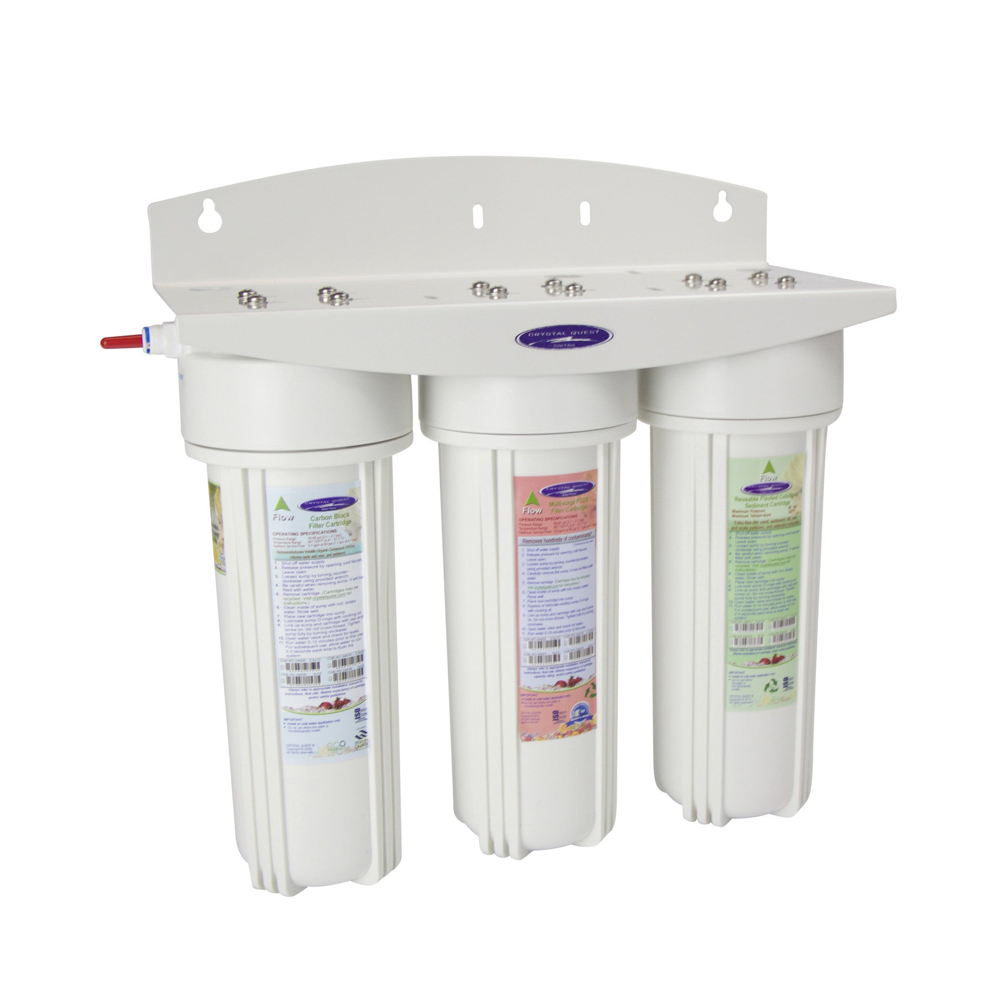 The Crystal Quest Commercial Triple Inline Water Filters eliminate the impurities of tap water to offer great taste and pureness. The perfect solution for any application, it is quick and easy to install and use, attractive, convenient, and effectively removes many contaminants from water. This uniquely designed water filter uses the latest technologies that blends the adsorption capabilities of coconut shell activated carbon with REDOX and more.
