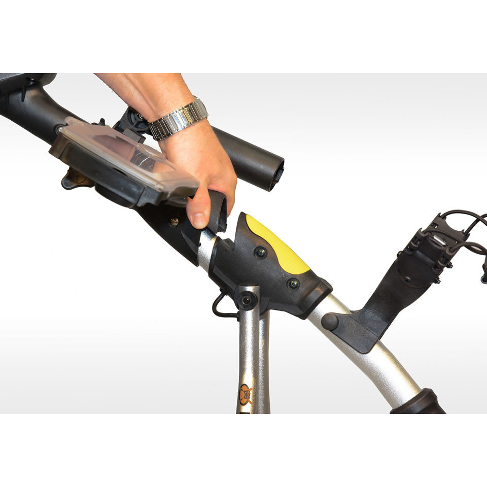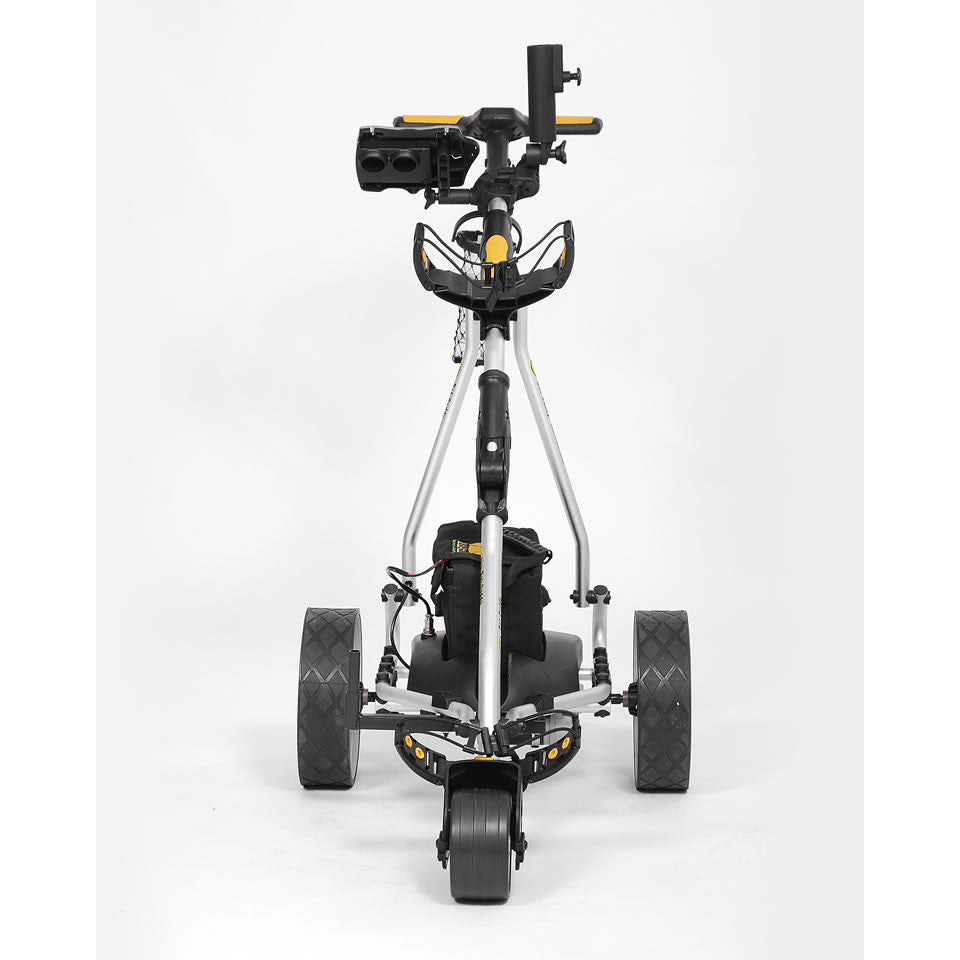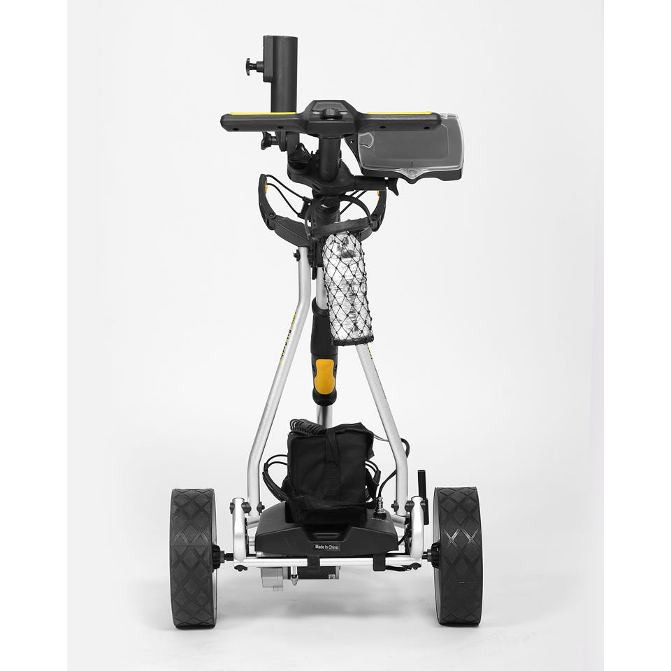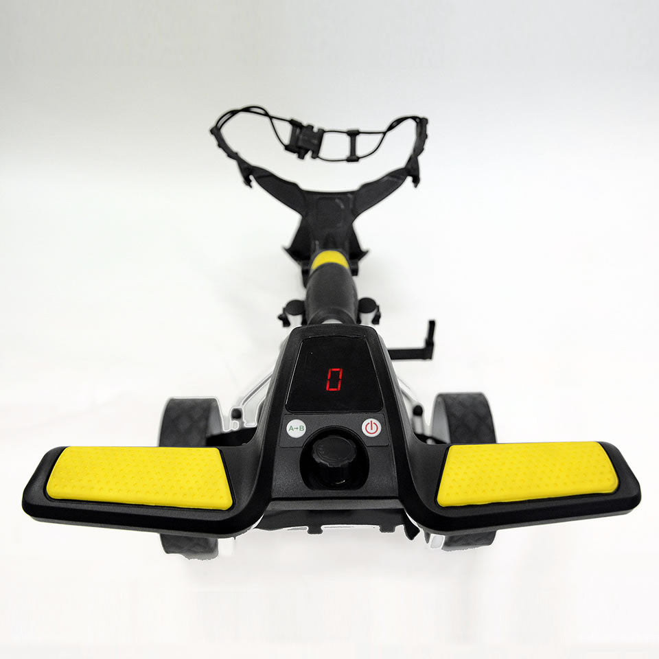 - Innovative Handle Functions - The newly designed T-Handle controls include an On/Off button, timed advance function controls (advance 10, 20, 30 meters/yards), Stop/Go cruise control function, USB port for GPS or cell phone, as well as the manual seamless speed control rheostat dial. This color enhanced handle emphasizes the high tech design with a digital display of the speed setting and gives you total control over the caddy at all times.