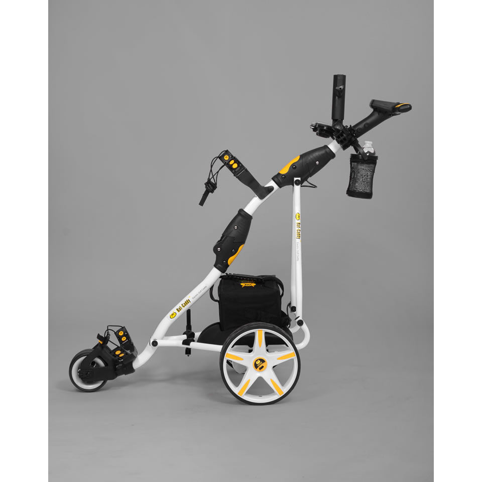 - Rear Wheel Drive - Both rear wheels are propelled via a steel gearbox and axle, so the cart does not lose traction uphill nor does it spin the front wheel while lifting or turning, unlike with all front wheel drive caddies. Beware of front wheel drive caddies which also have the motor weight that needs to be lifted every time you turn!! The Bat-Caddy Golf Caddy is smartly designed as an electric golf push cart and not just a retrofitted push cart!
