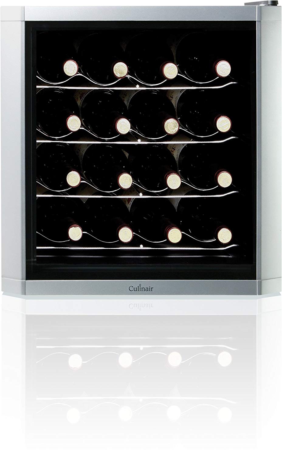 The Culinair Thermoelectric 16-Bottle Wine Cooler uses state-of-the-art technology to deliver quiet, vibration-free operation (no CFCs). The state-of-the-art thermoelectric refrigeration technology eliminates the need for a compressor, so it can reduce the internal temperature up to 30 degrees less than the ambient temperature. It features an adjustable temperature controller to keep your wine at the correct temperature at all times. Each wine cooler has adjustable shelves with a glass door for displaying your best bottles of wine. The flush back design coupled with the adjustable feet makes sure vibrations don't disturb bottle sediment. Our family of kitchen appliances has been designed with your family in mind. Simple to operate and gracefully stylish, each Culinair product is made to complement any home for all your kitchen needs.