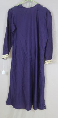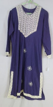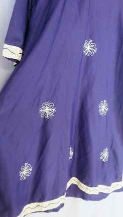 Dark Purple embellished cotton tunic yellow embroidered trim