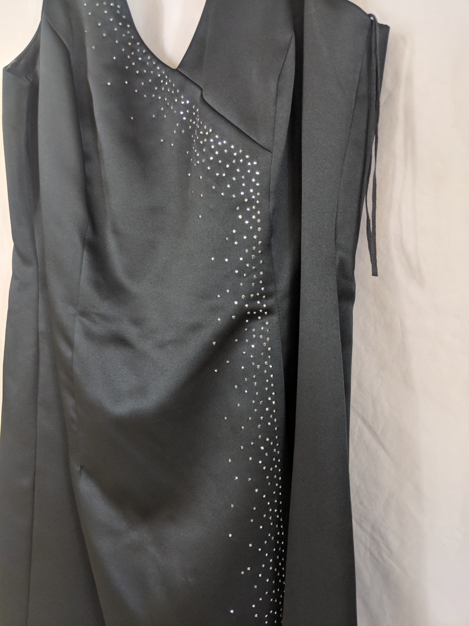 Dave & Johnny by Laura Ryne Black Satin V-neck Dress with rhinestone embellishments. This vintage piece comes from a vintage store in upstate New York. The store closed and the inventory can be yours anywhere in the world! Measurements are listed when possible. If not, please ask and we will get back to you ASAP. This collection is stored away from my homebase, a 4 day handling time is listed, though it’s very possible it can ship within 24 hours. Please alert me if you need this item quickly! Each piece is final sale due to the unique nature of the garments, so be sure to ask anything you are unsure about.