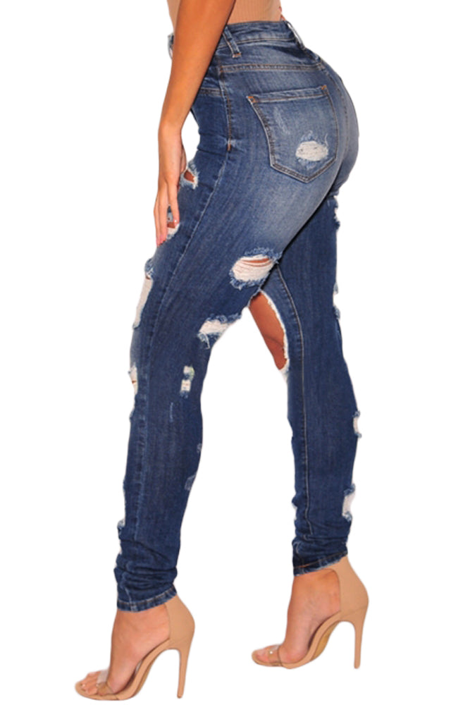 Denim Destroyed Ripped High Waist Skinny Jeans