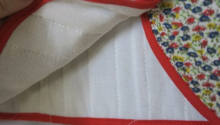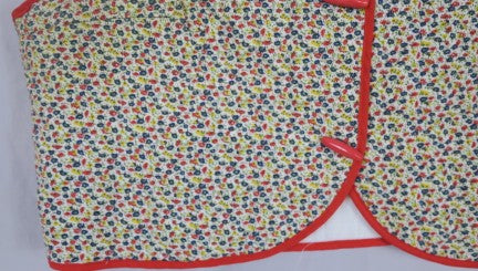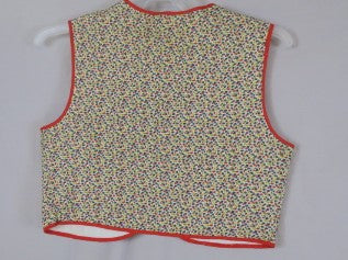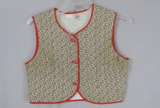 Diolen Cotton quilted vest, red trim, country boho floral peasant print blue/yellow/red buttons may be bakelite