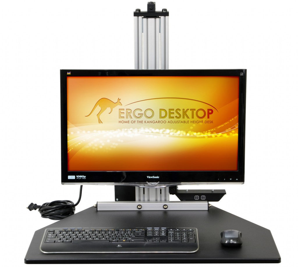 Description | The Electric Kangaroo Pro is an adjustable height desk that allows users to mount a single monitor to the unit via a VESA fitting. The electric motor makes it even easier to alternate between sitting and standing. The Electric Kangaroo Pro offers dual ergonomics, meaning that the keyboard and monitor can be adjusted separately to ensure the best ergonomic positioning. The Kangaroo Pro also allows users to convert their existing desk set up to a sit/stand solution. |