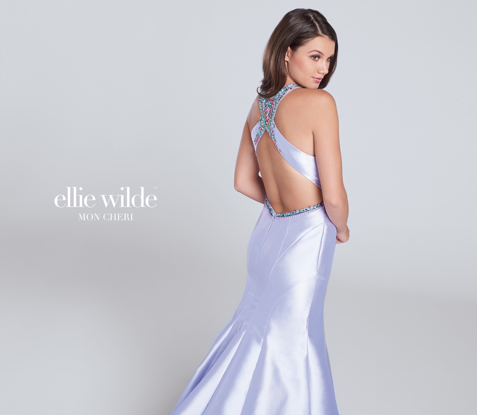 Sleeveless Mikado mermaid gown with unique jeweled high halter neckline and bodice, jeweled wide crisscross back straps, princess seams.