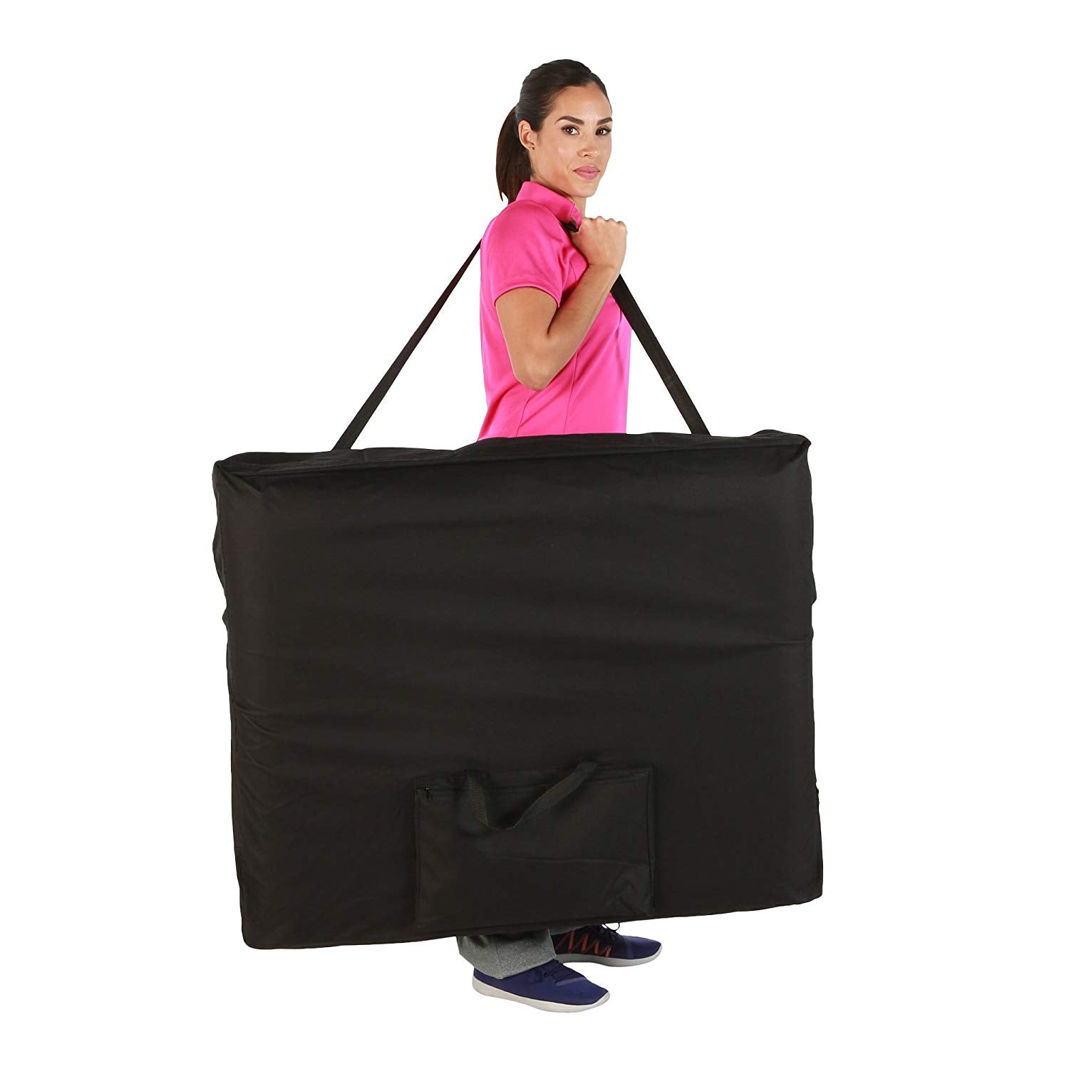 Easy under table storage for accessories. Accessories include a Towel rack, oil pouch and 3 reusable and washable 100% cotton face cushion covers.