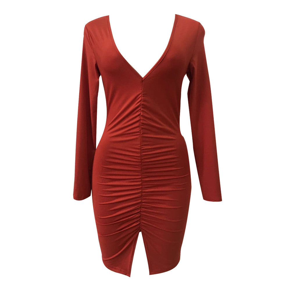 This Eye Catching Split Hem Bodycon Dress Long Sleeve packs a powerful amount of sexiness into a simple, body-loving structure. Featuring ruched design, sexy split hem, deep V neck and long sleeves styling, this dress will perfectly show your good curves and make you sexy with its bodycon fit .