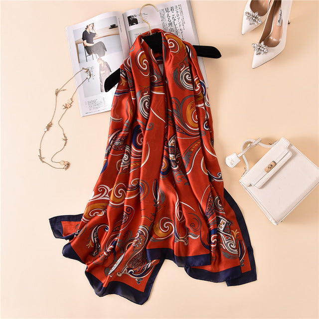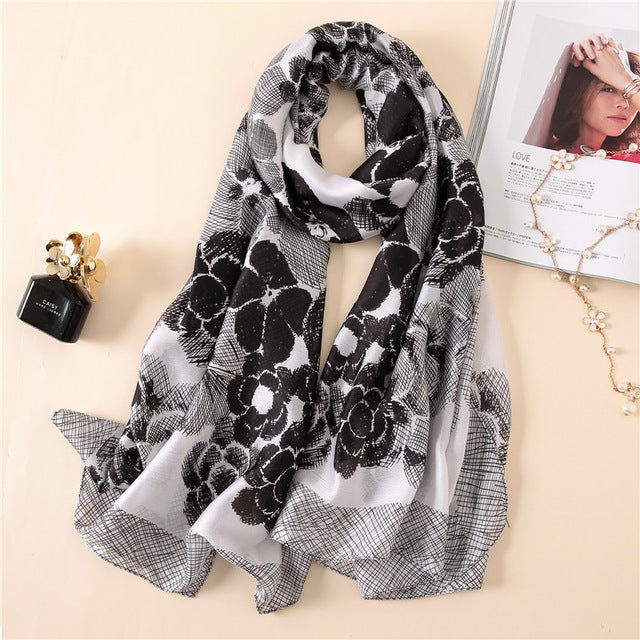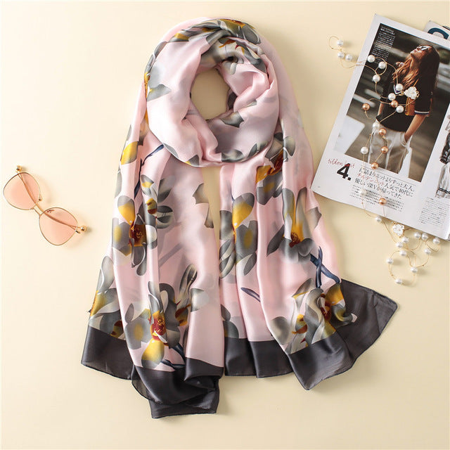 Department Name: AdultMaterial: Silk,RayonGender: WomenPattern Type: FloralStyle: FashionScarves Type: ScarfScarves Length: >175cmItem Type: Scarvesfor: women scarfsize: 180*90cmstyle: silk scarves