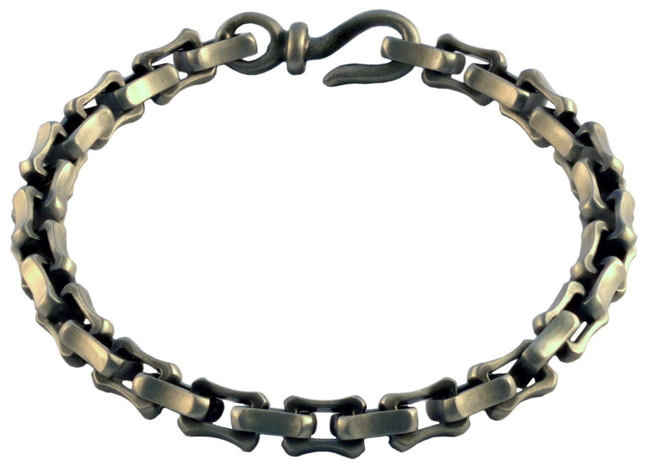 An original and unique chain hand-made from individally cast solid pewter links oxidised black and then hand brushed to create highlights and a matte finish.