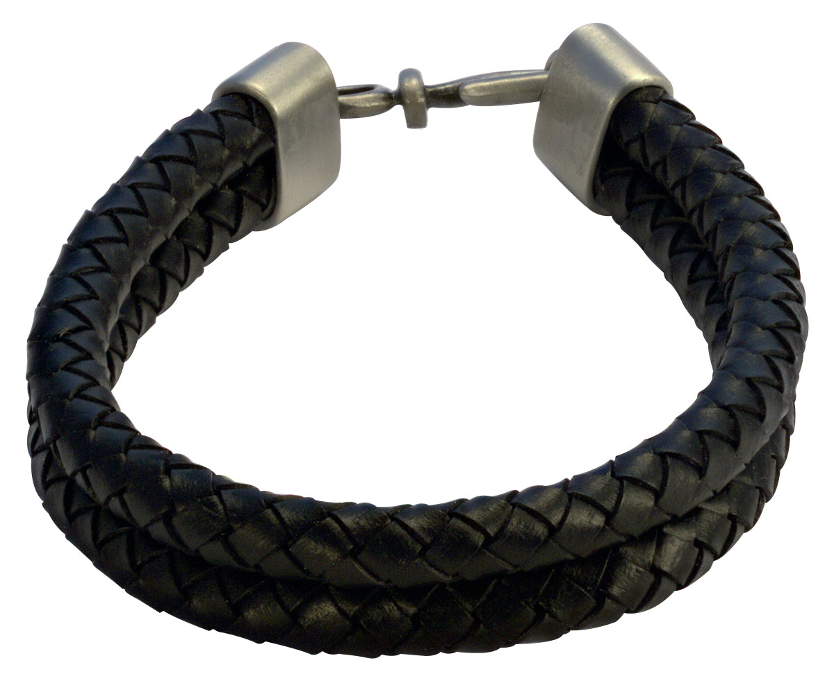 A classic black leather double 6mm bolo bracelet combined with a solid pewter connector oxidised black and then hand brushed to create highlights and a matte finish..