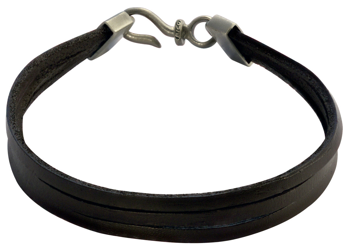 A classic wrist wrap combining a three 2mm by 5mm black & brown leather straps with a solid pewter connector oxidised black and then hand brushed to create highlights and a matte finish.