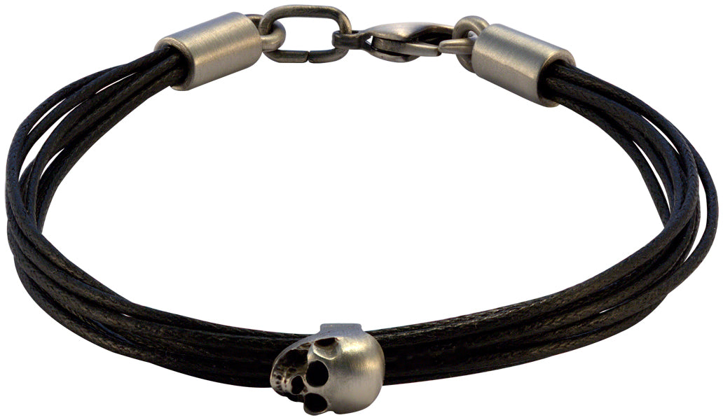A classic wrist wrap combining five strands of black 1mm cotton cord with solid pewter Skull element and connectors oxidised black and then hand brushed to create highlights and a matte finish.