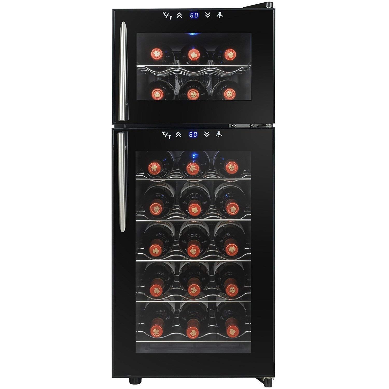 Firebird 21 Bottles Dual Zone Black Finish Touch Control Panel Freestanding Electric Wine Cooler Cellar
