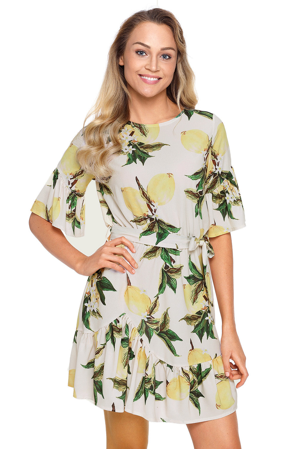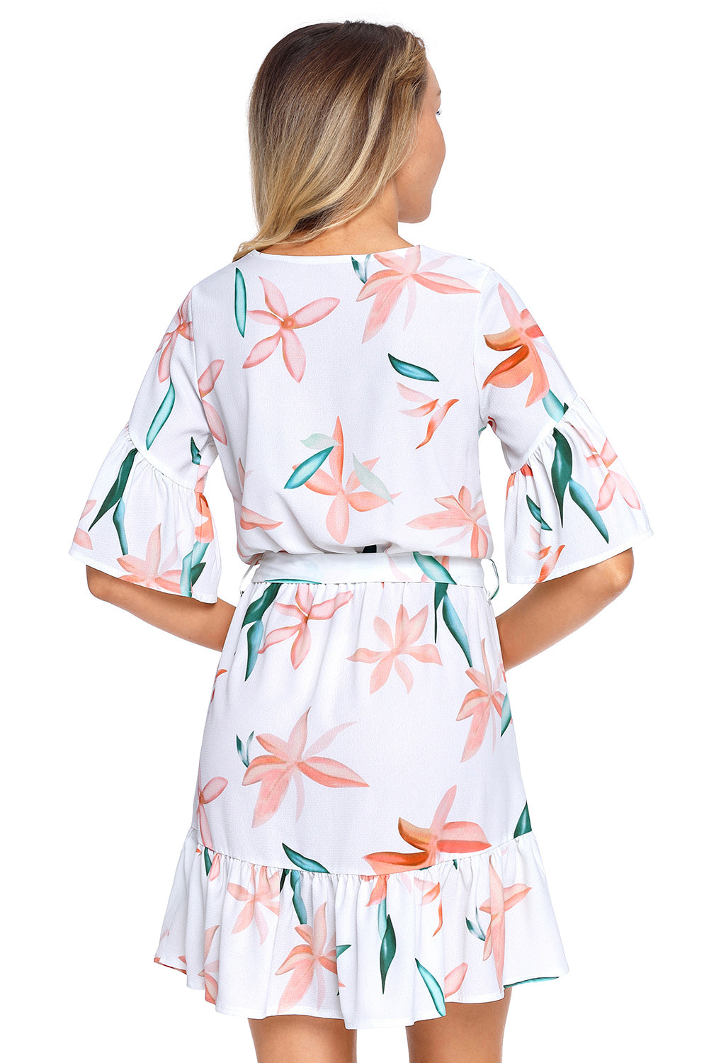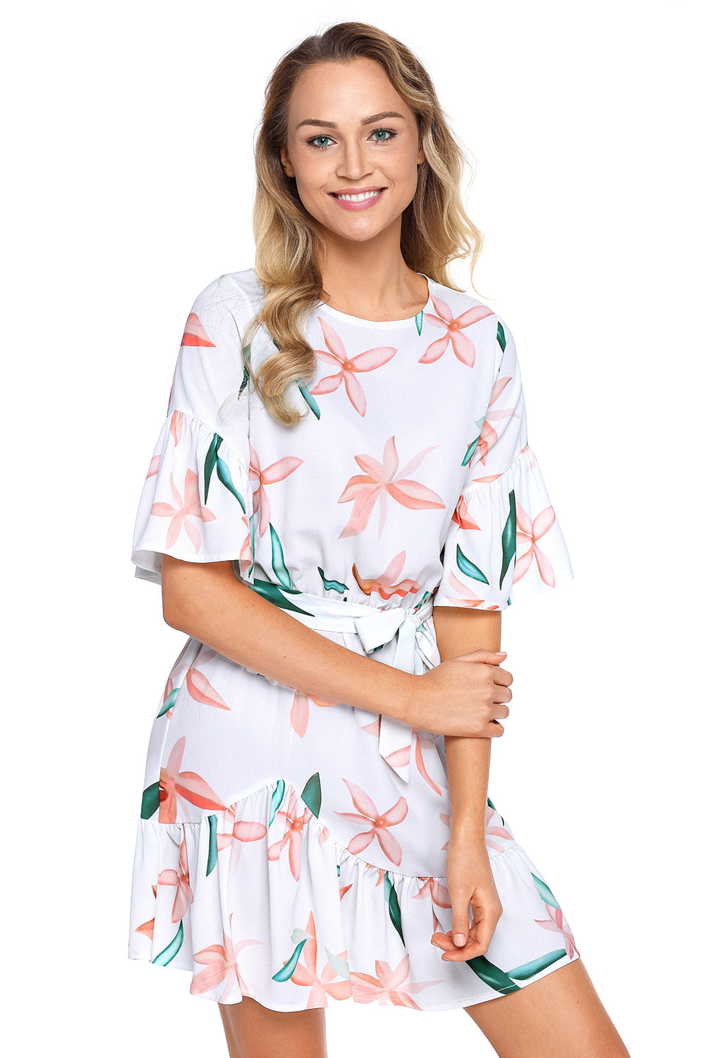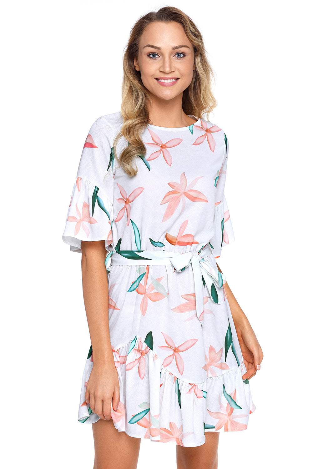 Floral Pattern Ruffle Hem Chiffon Dress