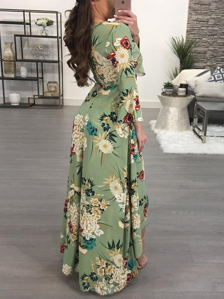 Floral Pattern V Neck Asymetrical Wrap Maxi Dress