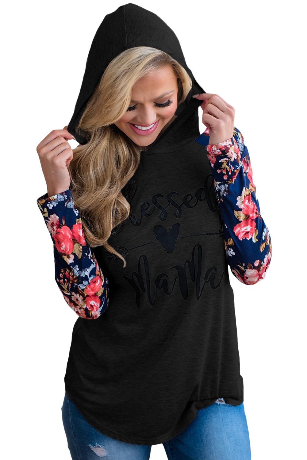 Floral Raglan Sleeve Blessed Mama Hoodie