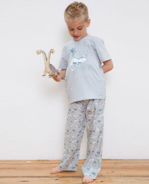 "Super soft and comfortable sleepwear set with solid fabric trims. Top: 60% Cotton + 23%Modal + 15% Acrylic + 2% Elastane - Straight bottom, round neck and placement print at the front chest Pant: 64% Cotton + 36% Modal – Twill tape functional drawcord, self-fabric fully elasticated waistband and square pocket at the back right hand side as worn This model is sold as a Pajama Set WARNING – KEEP AWAY FROM FIRE AND FLAMES Machine wash, wash at 30°, inside out, wash dark colors separately, do not soak, do not iron trim, save energy "