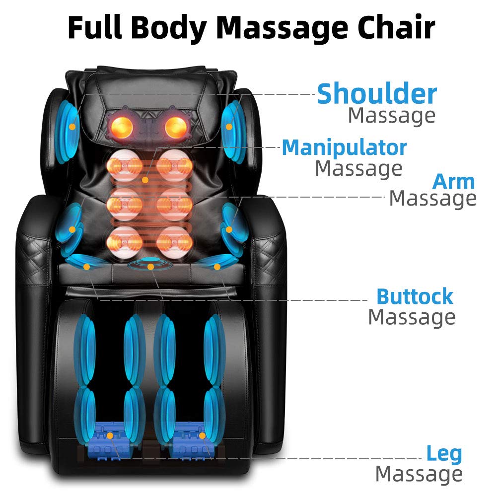 Full Body Massage Chair with Lower-Back Heating, Bluetooth Speaker and Foot Roller
