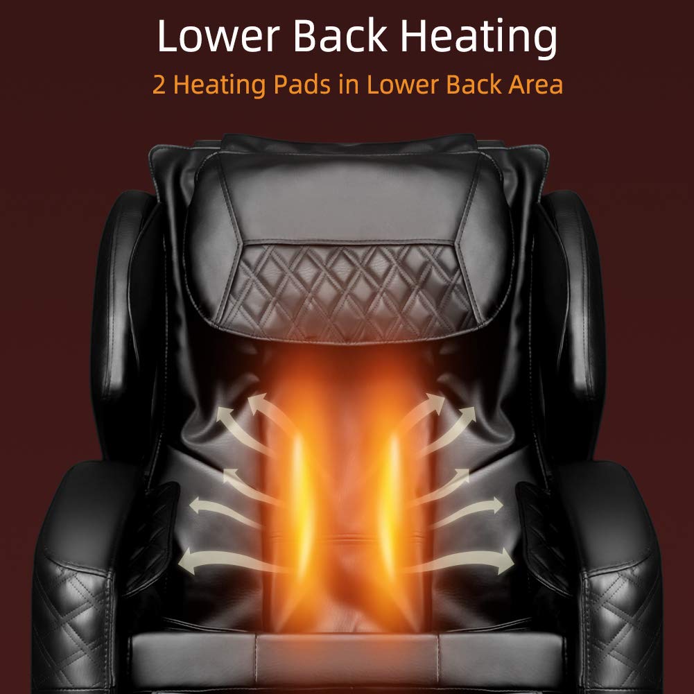 2 heating pads located in the lumbar area that dilate the blood vessels of the muscles surrounding the lumbar spine improve blood circulations throughout the body. This process increases the flow of oxygen and nutrients to the muscles, helping to heal the damaged tissue.