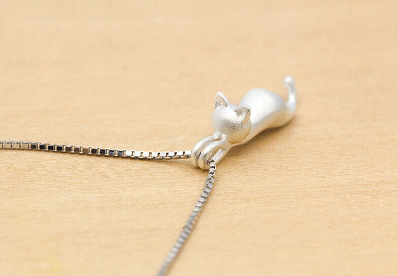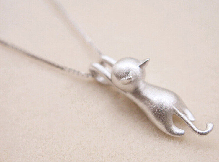 Genuine 925 Sterling Silver Necklaces Cats Pendants&Necklaces Sterling Silver 925 Kitty Necklace Fine Jewelry Colar de Plata D1