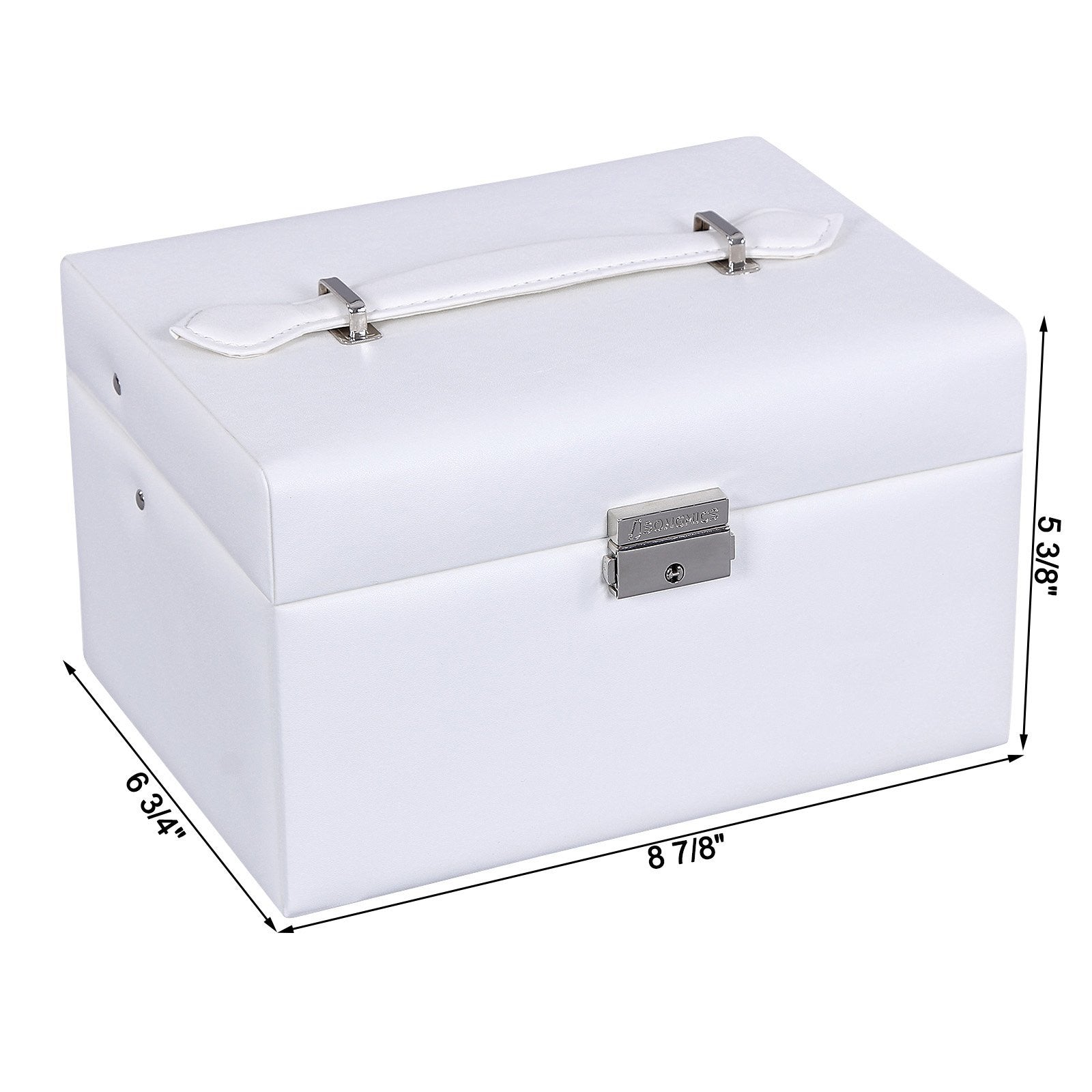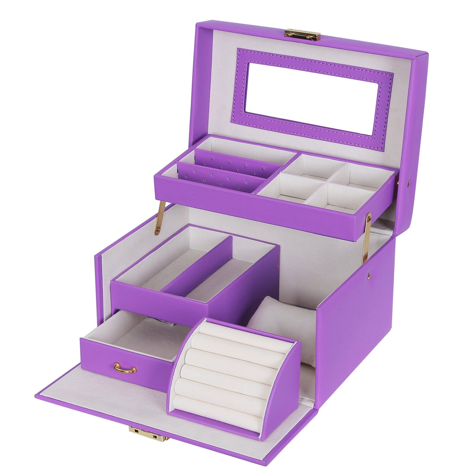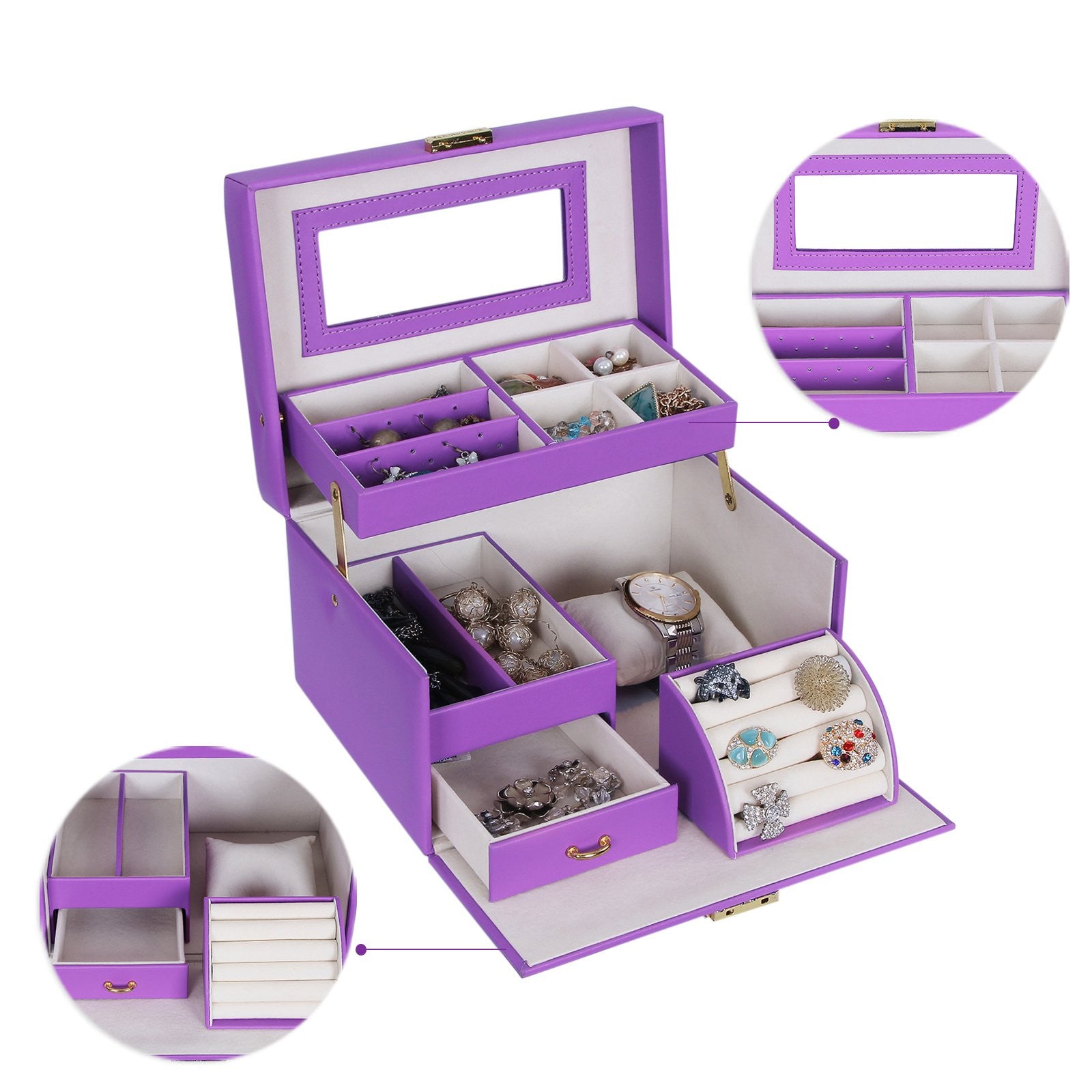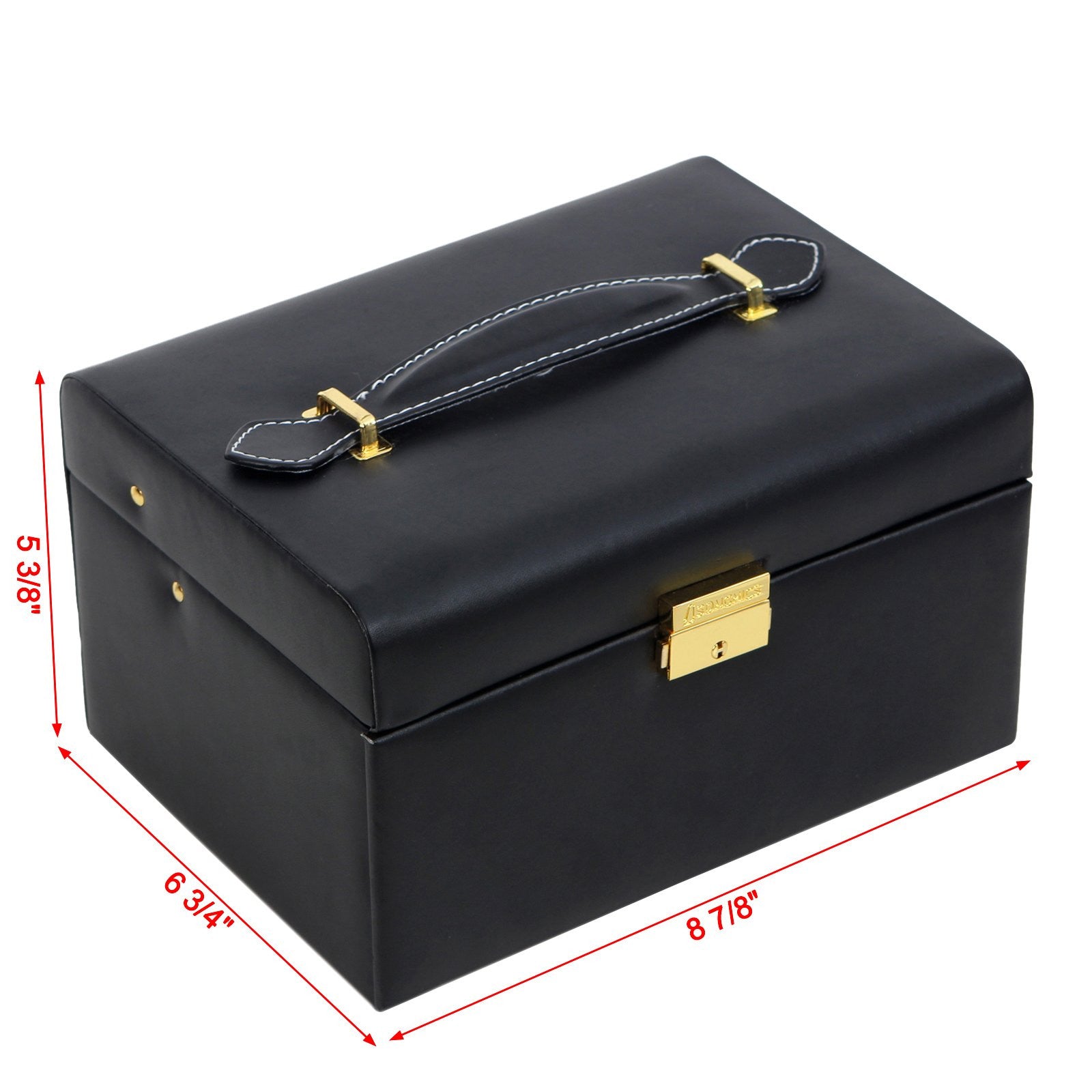 Keep all your beloved jewelry well organized, easy to find, and beautifully displayed when you store them in this SONGMICS black jewelry box. With versatile sections, the jewelry box suits for rings, earrings, necklaces, bracelets, watches and other matching items. Selected materials and fine workmanship create a fashionable look adding décor to your home. Say goodbye to the days of hunting down jewelry you needed, and find what you need instantly.