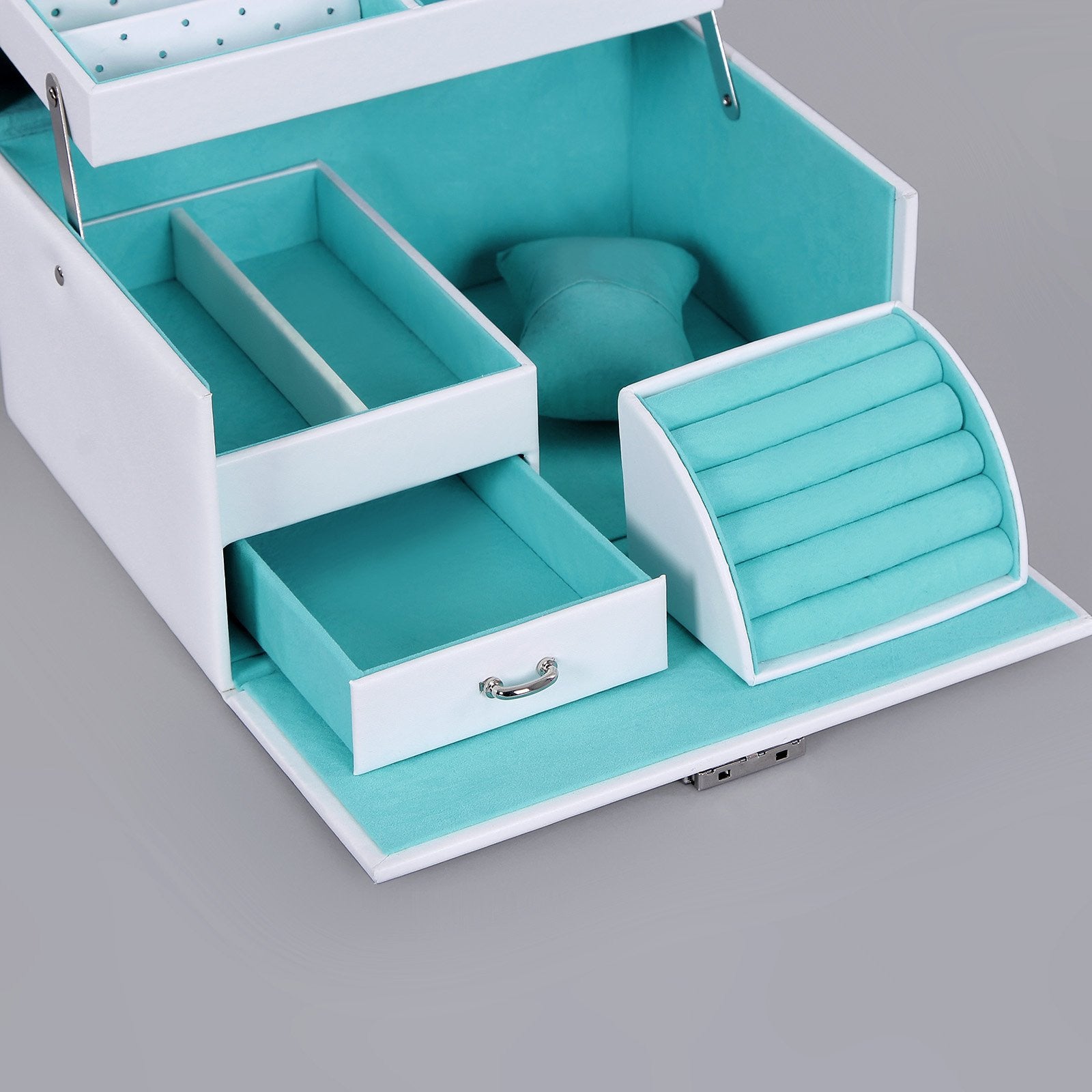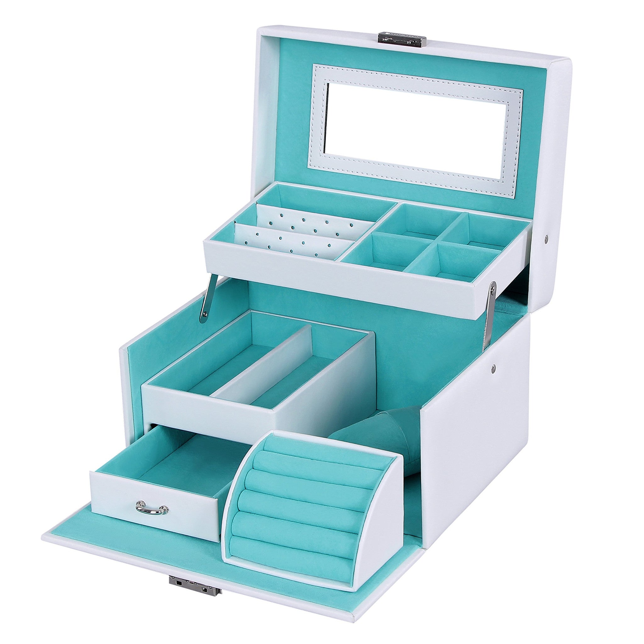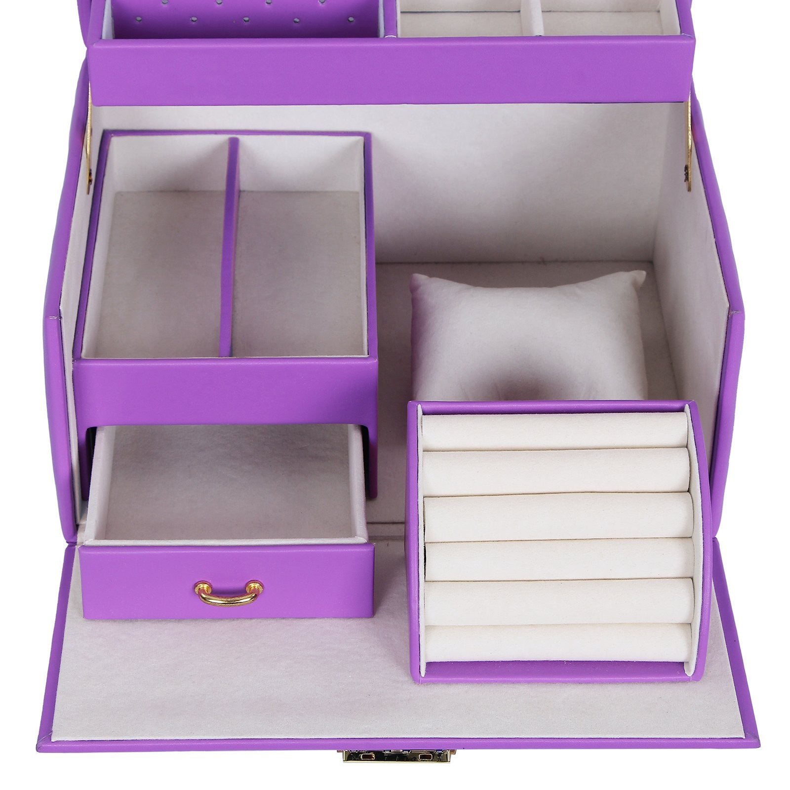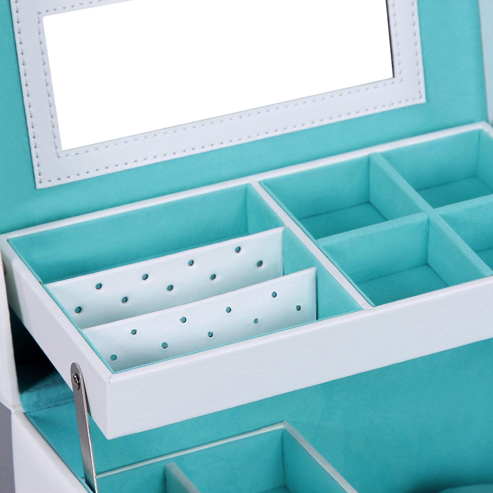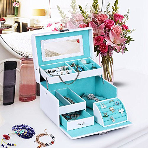 Keep all your beloved jewelry well organized, easy to find, and beautifully displayed when you store them in this SONGMICS black jewelry box. With versatile sections, the jewelry box suits for rings, earrings, necklaces, bracelets, watches and other matching items. Selected materials and fine workmanship create a fashionable look adding décor to your home. Say goodbye to the days of hunting down jewelry you needed, and find what you need instantly.