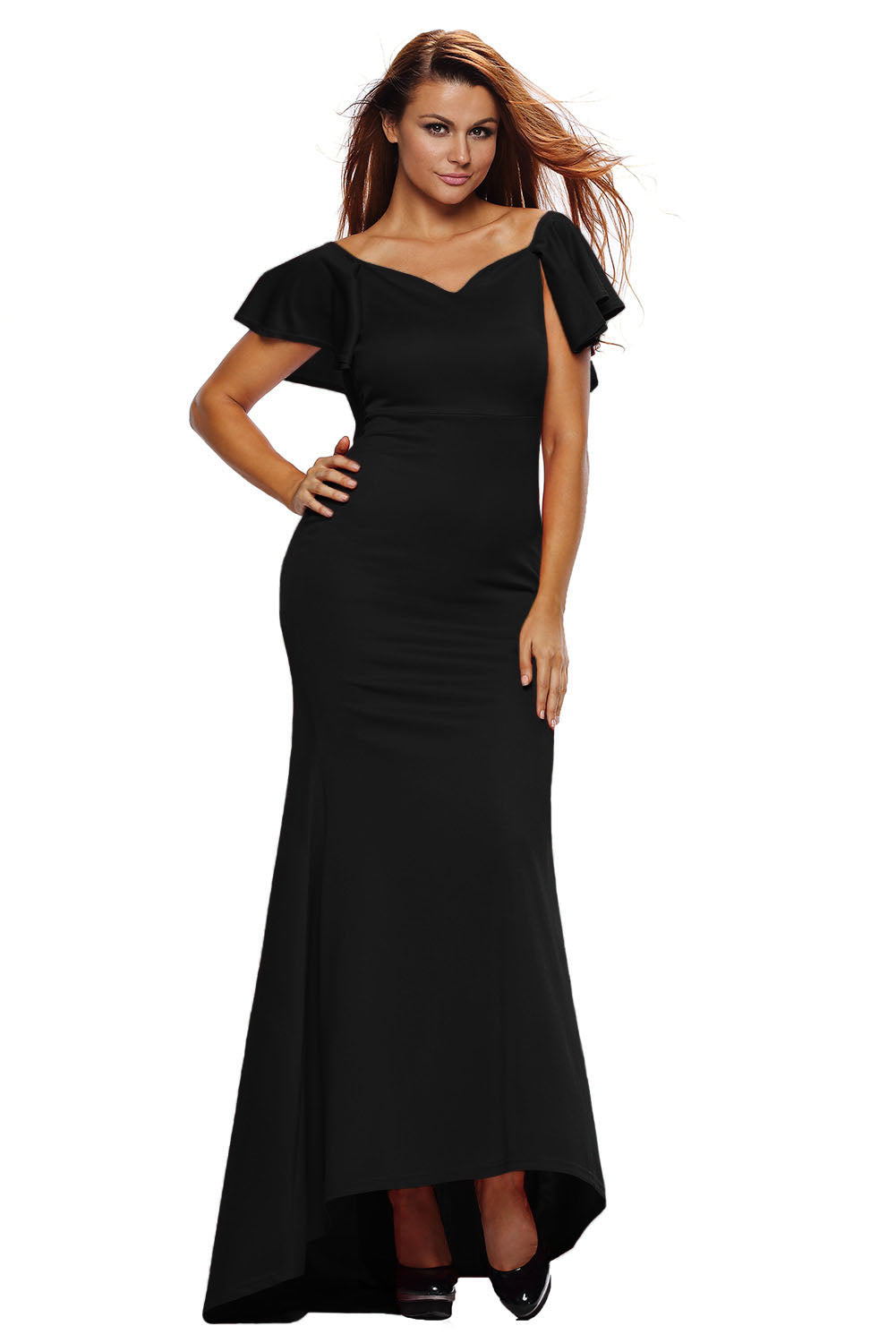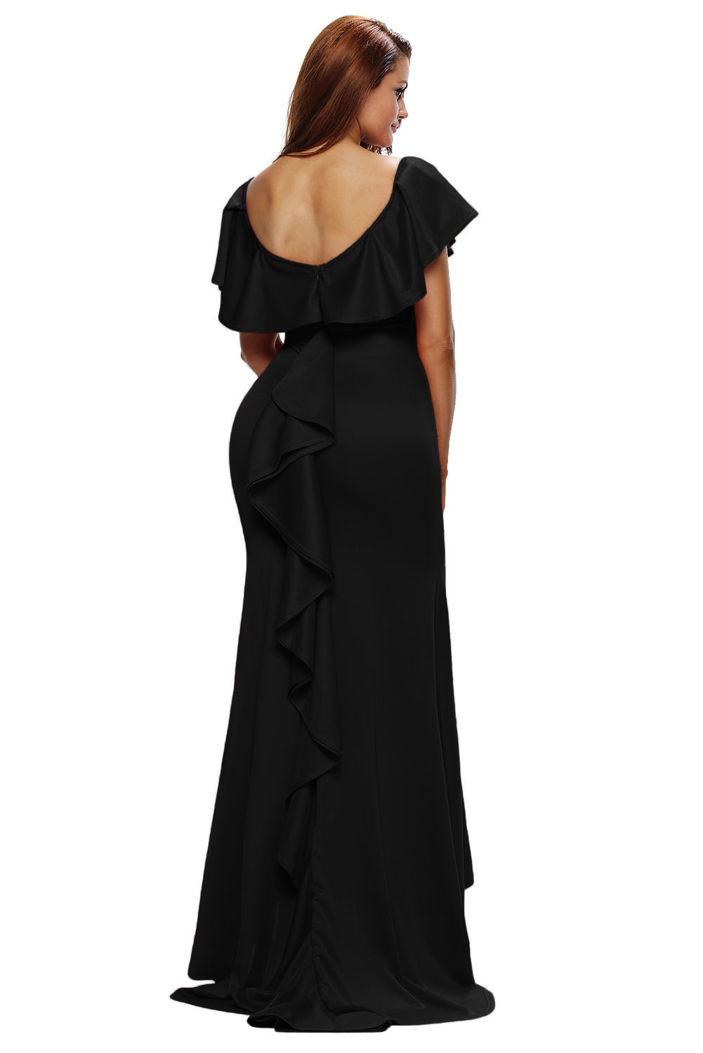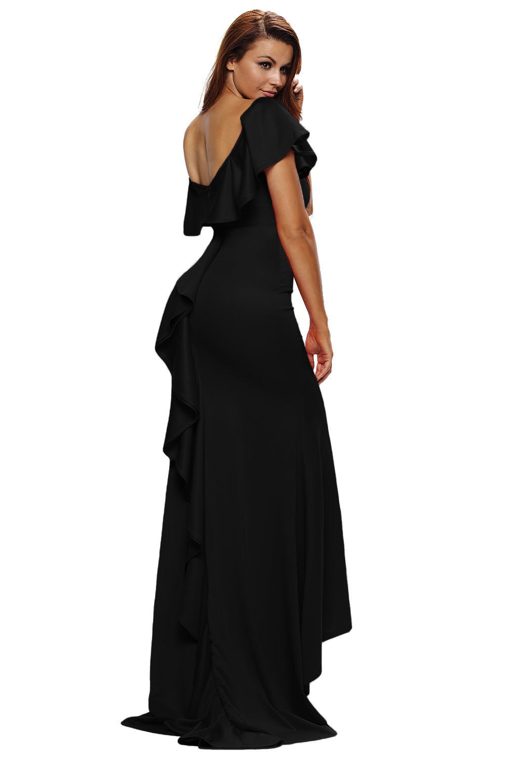 Gorgeous Ruffle Accent Hot Black Party Gown