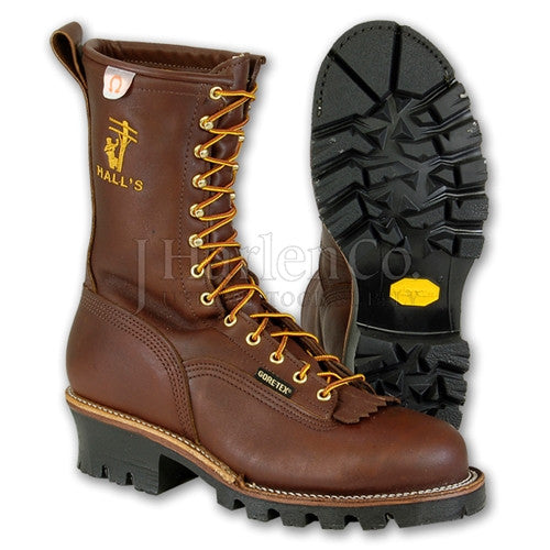 Hall’s famous 10” patch boot with 400 grams of 3M Thinsulate insulation. Made of water resistant leather with a water-repellent insole board and guaranteed waterproof and breathable Gore-Tex® fabric, this stylish boot keeps feet dry. Other details include lace-to-toe styling, stitch down welt construction, and a false tongue. Composite toe meets or exceeds ASTM standard F-2413-05. Electrical Hazard (EH) rated, also meets tougher Canadian EH standards. Unique steel 1" wide 3-rib pole climber shank. Made in the USA.