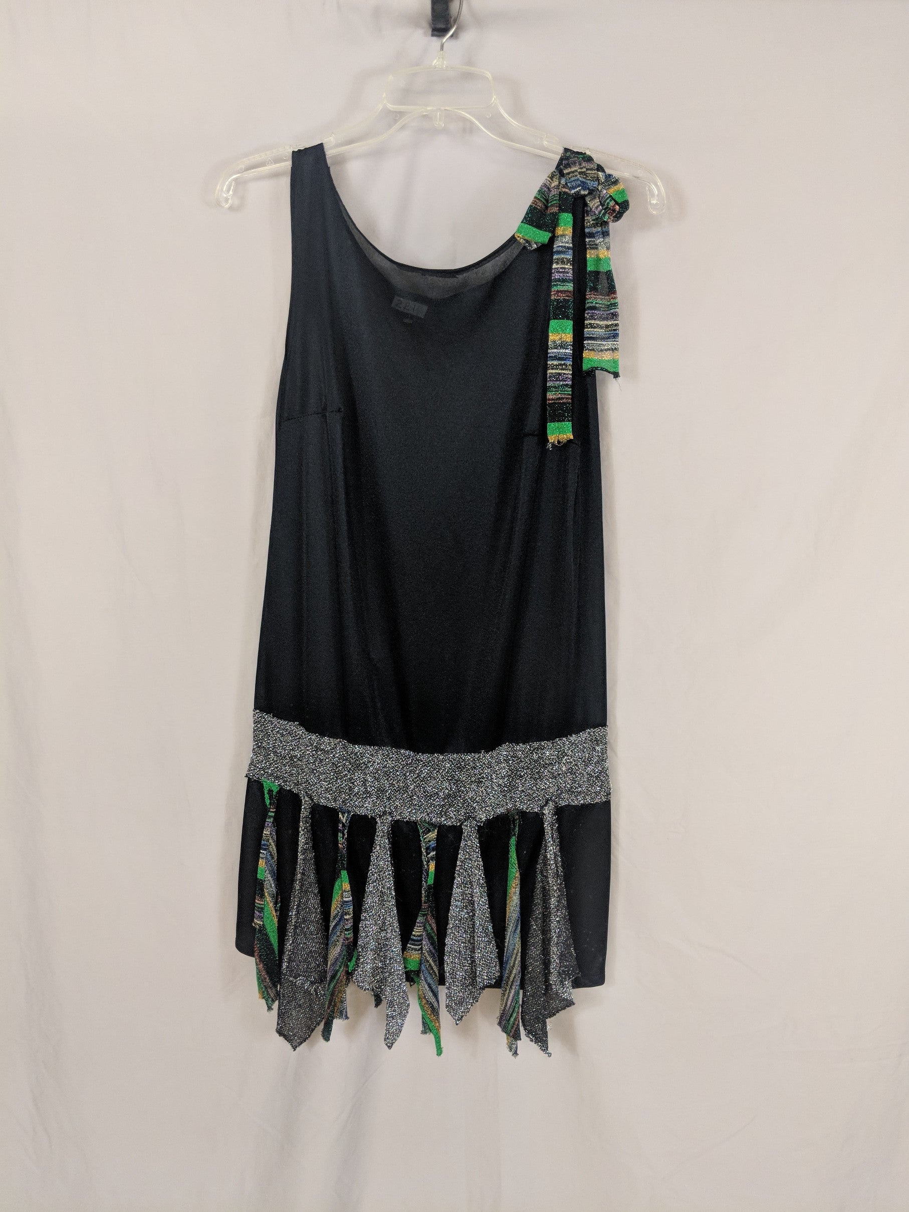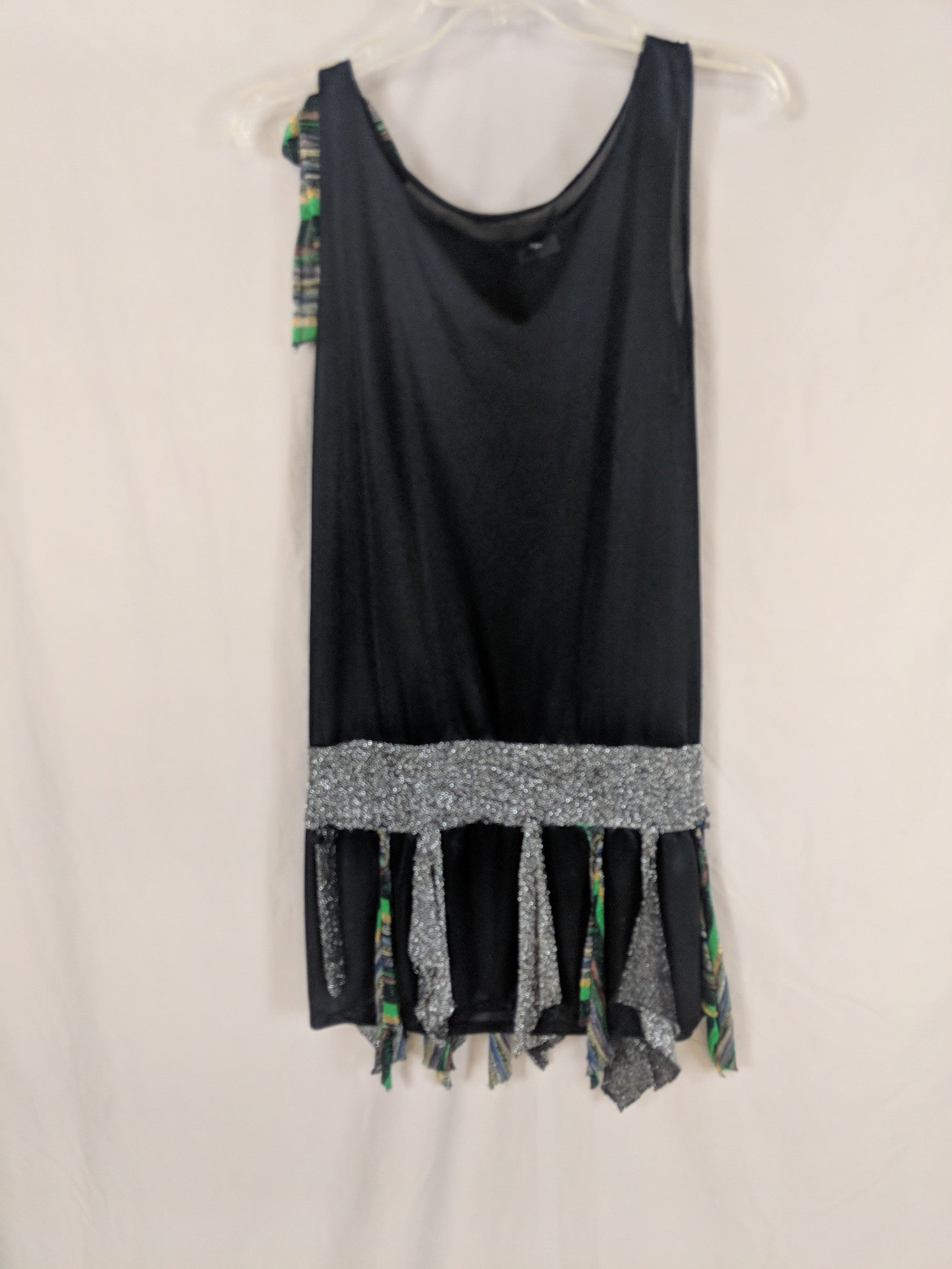 Handmade funky glitter flapper dress costume black/green/silver strip drop waist Medium