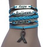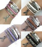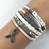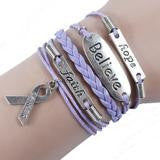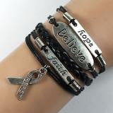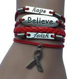 Handmade Leather and Silver Hope, Faith, Believe Pink Ribbon Breast Cancer Awareness Charm Bracelet