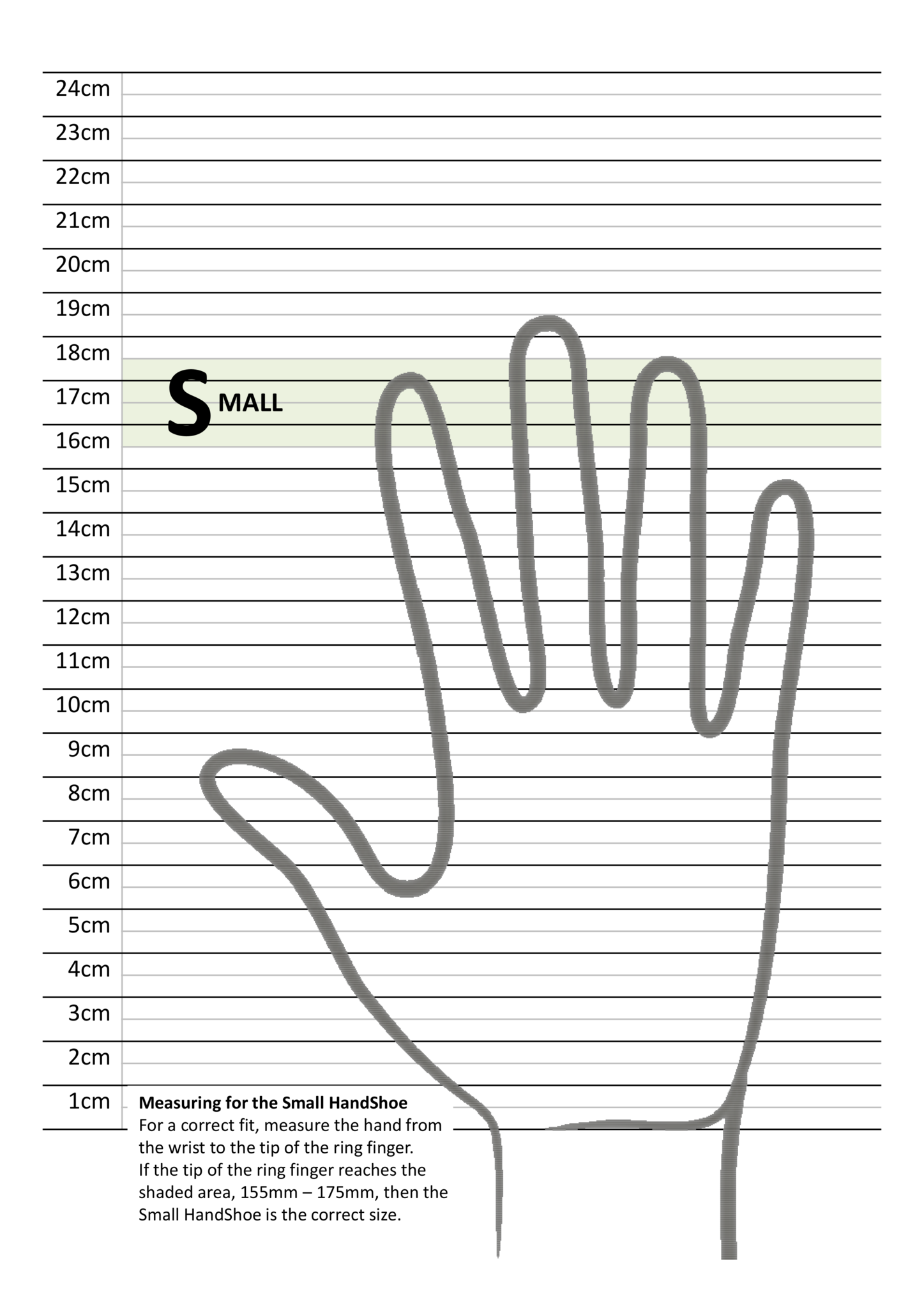 To determine the appropriate model, measure the hand from wrist to the tip of the ring finger: