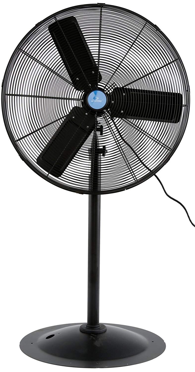 This iLiving 30 inch Commercial Pedestal fan is designed to move high volumes of air for offices, factories, warehouses, loading docks, and auto shops. This fan has a 3-blade aluminum propeller and the fan housing is constructed of heavy-duty steel with powder-coated wire guards in compliance with the United States OSHA Standard 1910.212, 1/2". UL & cUL Listed. Specifications: Blade Dia.30", 115 volt, Watts 365, Phase 1, Hz60, HIGH CFM 7261, Motor HP 1/4, Motor RPM 1113/902, Operating Amps 3.4/2.0, Air Velocity (FPM) at 10 Ft.1010.