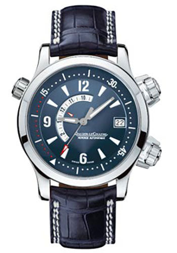41.5mm Platinum case, blue dial, automatic calibre 918 movement, alligator leather strap with deployant buckle. Water resistant to 100 meters.