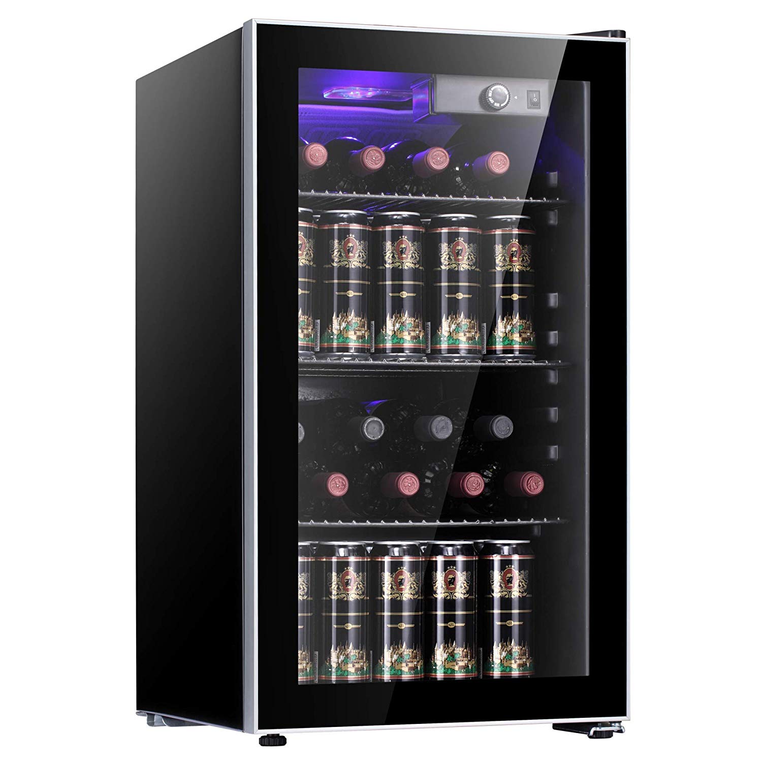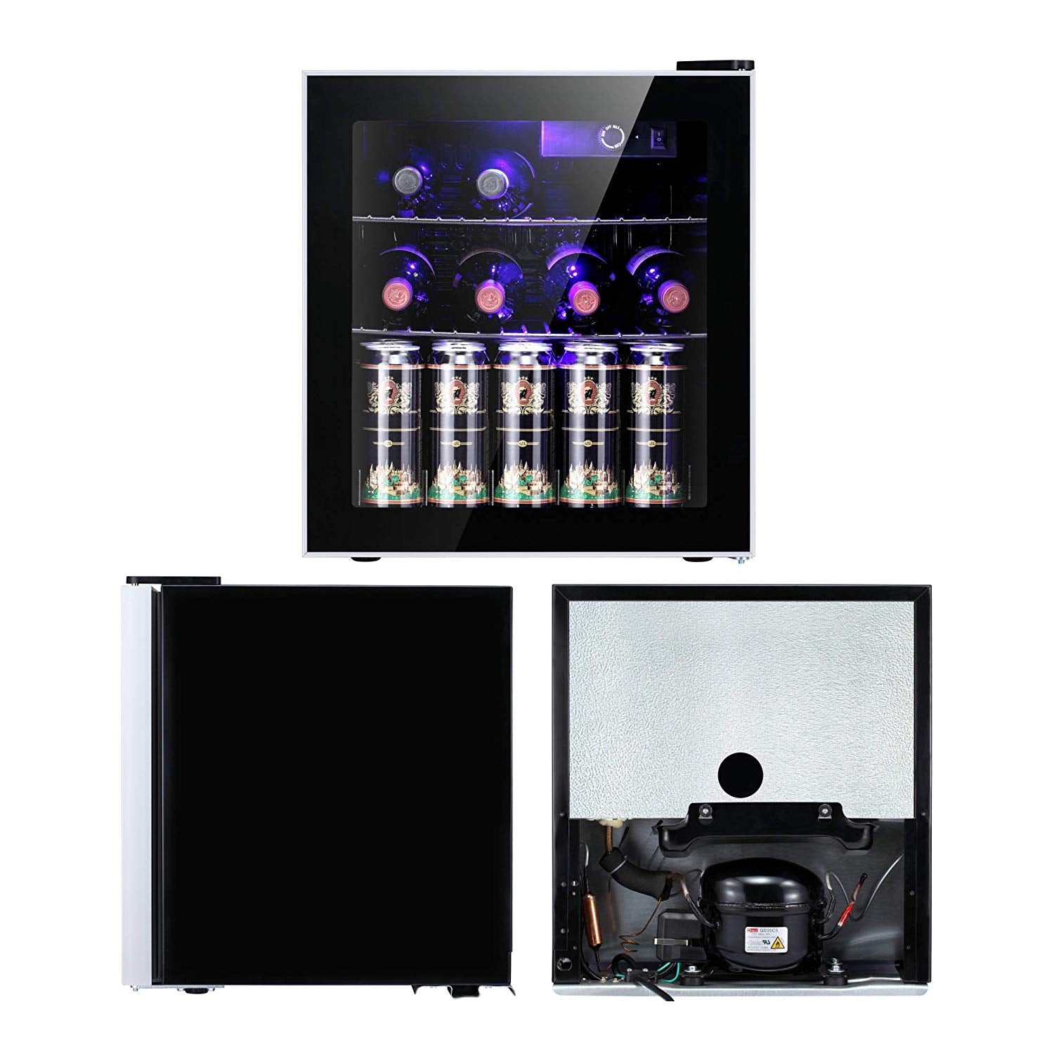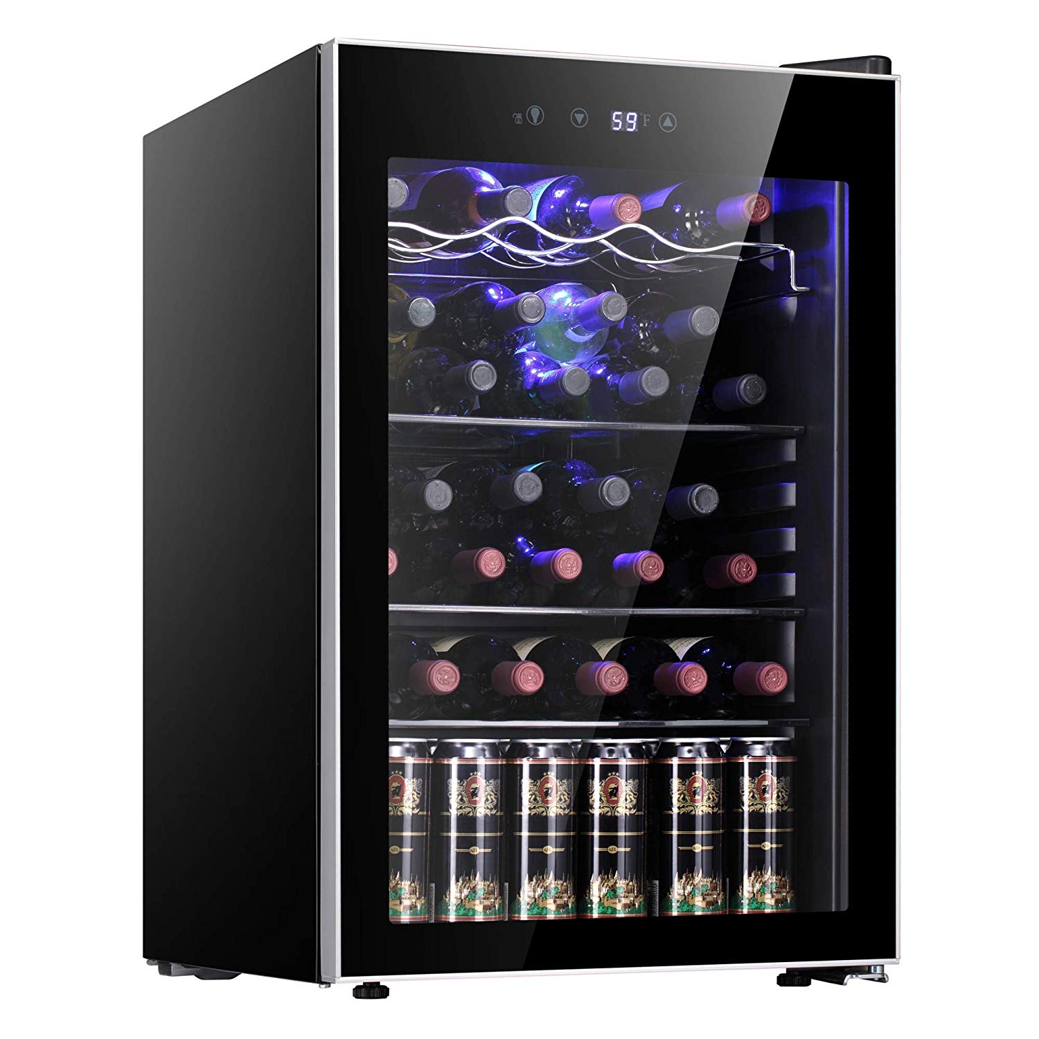 - 37 Bottle Capacity: 37 standard red and white wine bottles capacity, also perfect for canned beer and beverage storage. Equipped with movable black shelves, glass door and adjustable leveling legs.