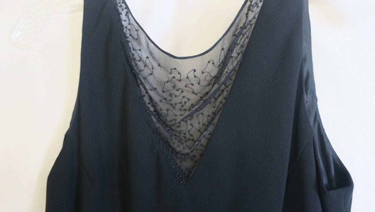 Jones New York Black Sleeveless v-neck flowy dress with swirl beading detail. This vintage piece comes from a vintage store in upstate New York. The store closed and the inventory can be yours anywhere in the world! Measurements are listed when possible. If not, please ask and we will get back to you ASAP. This collection is stored away from my homebase, a 4 day handling time is listed, though it’s very possible it can ship within 24 hours. Please alert me if you need this item quickly! Each piece is final sale due to the unique nature of the garments, so be sure to ask anything you are unsure about.