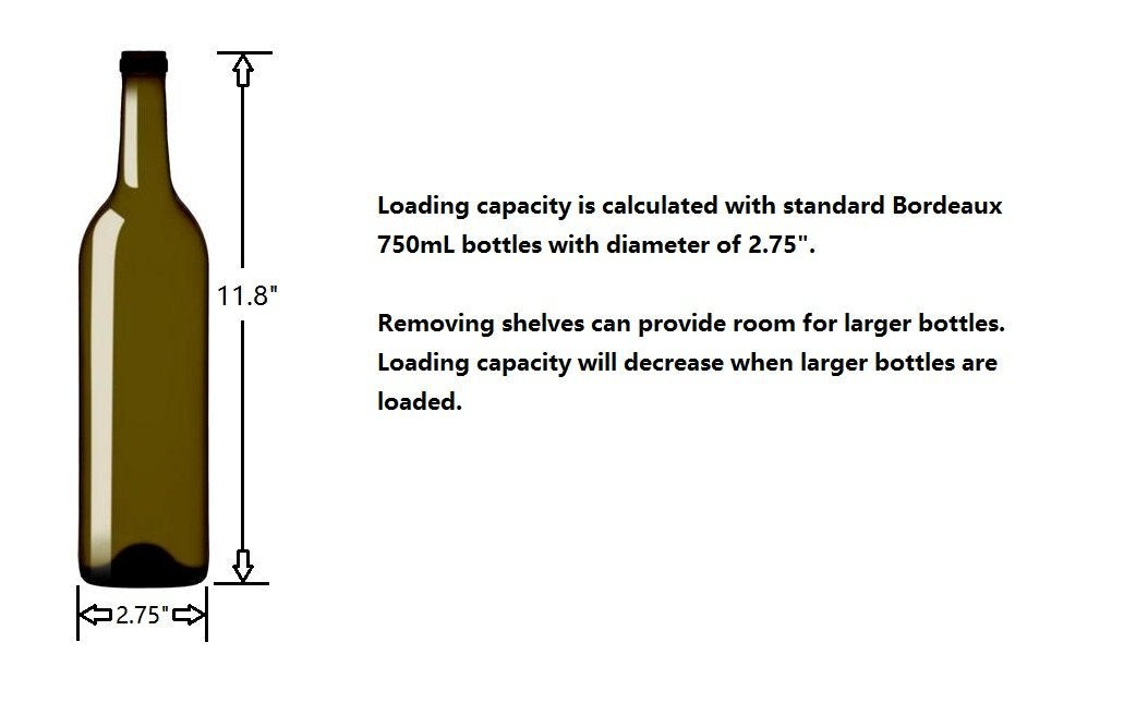 - 30-BOTTLE CAPACITY: 30-BOTTLE CAPACITY: Holds up to 30 bottles of your favorite wine in different size, and is only affected when having larger bottle, like Pinot or Champagne. It's the perfect choice for the wine lover having various wine collection.