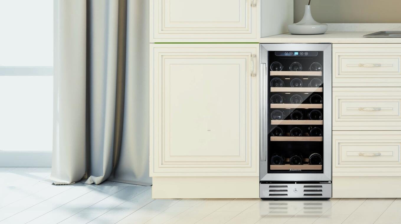 Kalamera 15'' Wine Cooler 30 Bottle Built-in or Freestanding with Stainless Steel & Double-Layer Tempered Glass Door and Temperature Memory Function
