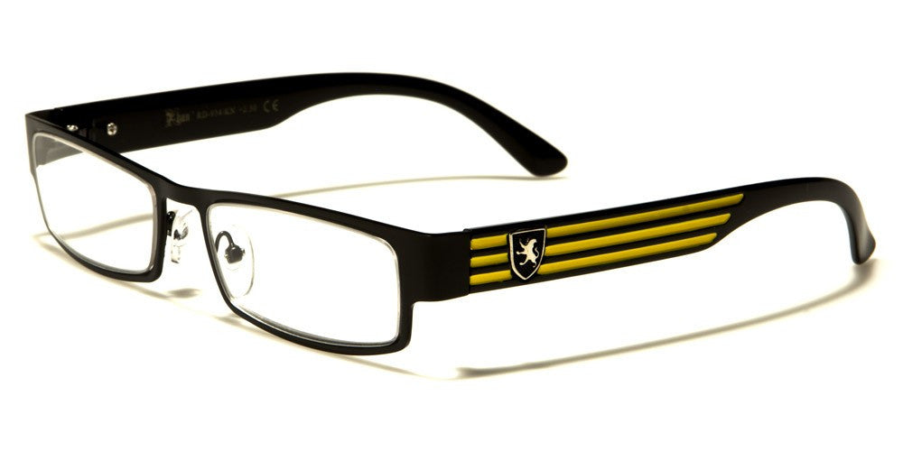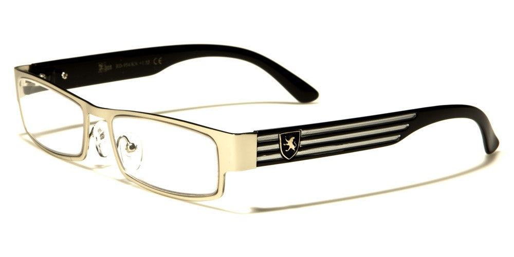 If you like to read and like to sport your own unique style while reading, then these prescription glasses by Khan are just for you. Designed for both men and women, these stylish glasses feature a metal frame and plastic arms designed for comfort and strength. The arms are thick with textured horizontal stripes and the Khan logo. The lenses are rectangular in shape and offer ultraviolet protection. These glasses are available in a variety of colors sold in an assorted dozen.