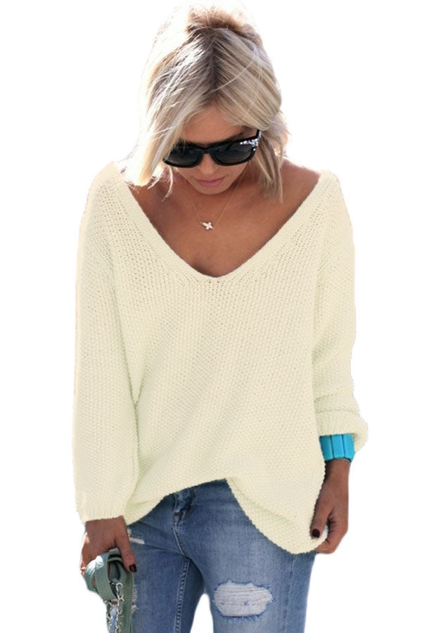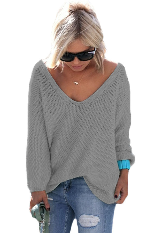 Up your basics and indulge in some fine knitwear for the new season. This knitted jumper ticks all the boxes. Featuring a daring plunge V neckline, long sleeves and a leisure loose fit, you'll look effortlessly casual. style with skinny jeans and flatforms. Popular with modern women from all over the world and all ages.