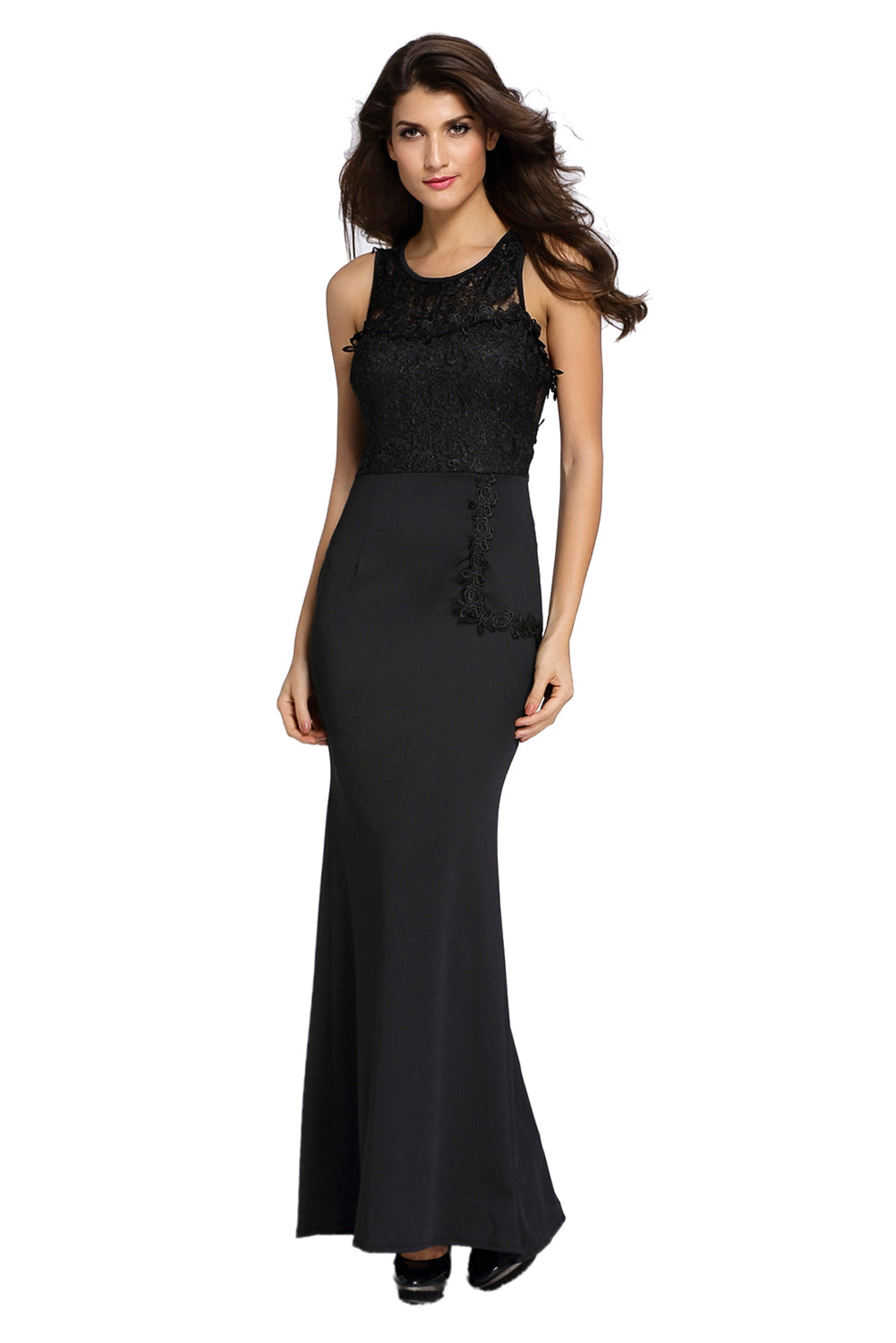 Evening parties are always special no matter for what occasion and so it definitely demands a special eye-catching dress. Dressing up very well for an evening party is the most important thing for women as it adds a special feeling of elation for every woman. Lace Embellished Sleeveless Maxi Evening Dress featuring an elegant silhouette with a slimming fit shape, back cut out and lace detailing.