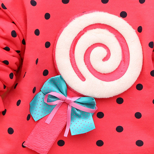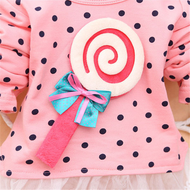 2017 Newest Autumn Spring Kids Sweater Greatly Lollipop Full Version Dot Girls T-shirt Stitching Baby Girls lace Dresses