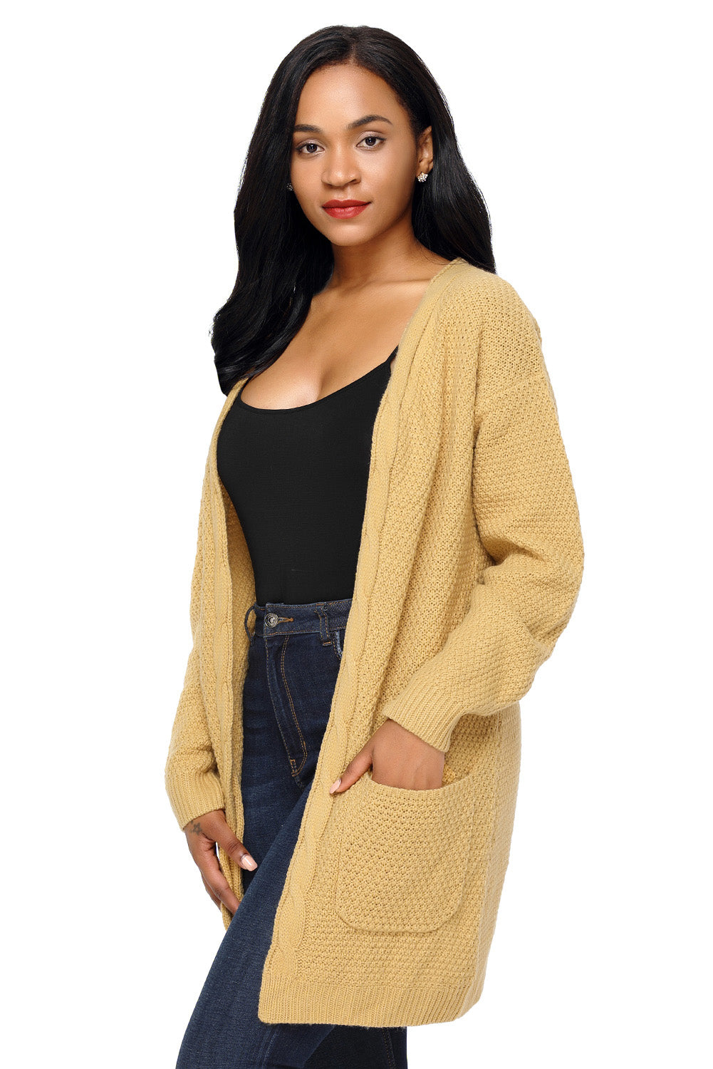 Long Open Front Pocket Cardigan is elegant and stylish, perfect to wear in spring, fall and winter. Waffled texture and cable open edge, long sleeve, the pocket design is chic and practical as well. Long Open Front Pocket Cardigan is convenient and easy to put on/take off.