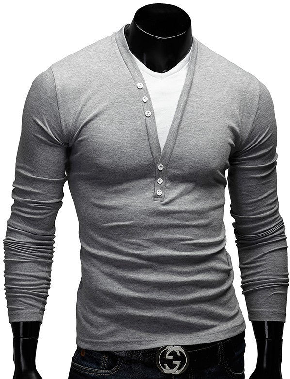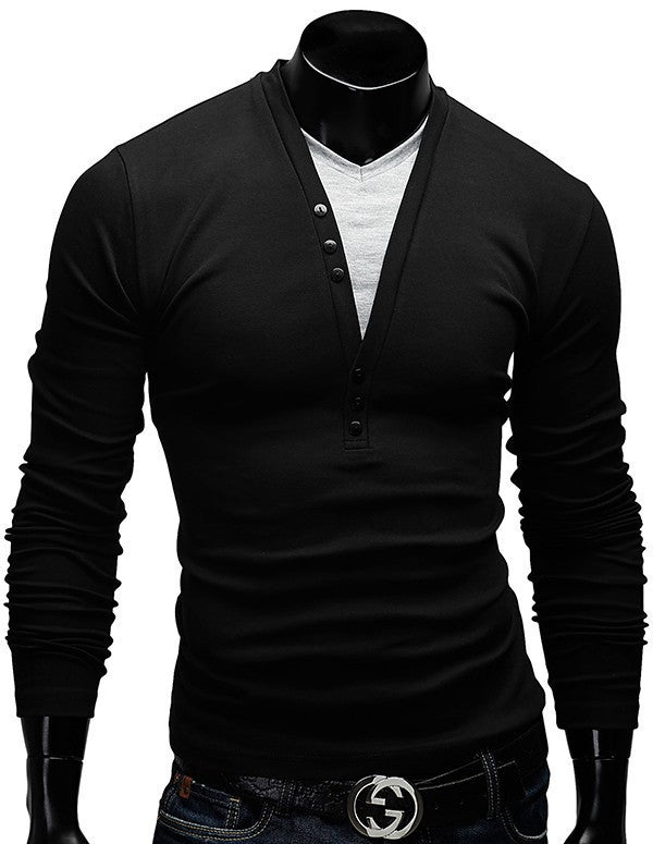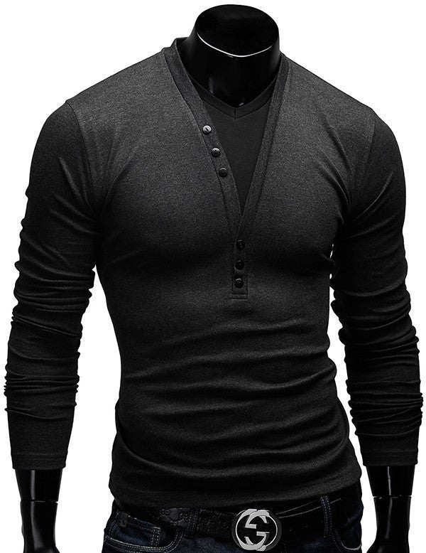 Description: Fashion V Neck Long-sleeved T-shirt Men's Button Casual T Shirts