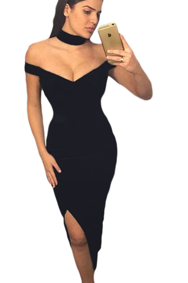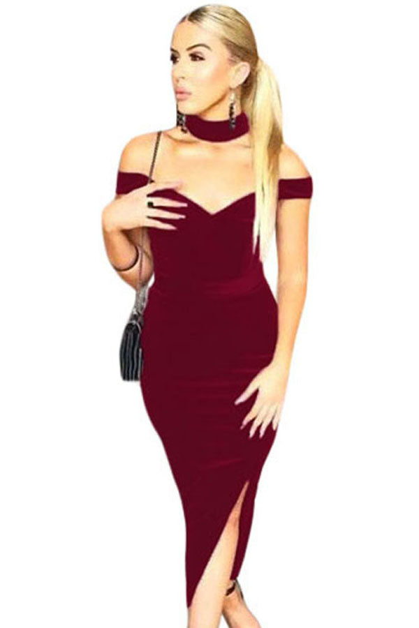 We just upped the ante with the Luxurious Long Party Dress with Choker. Soft hand feeling and honorable design with excellent fabric made, you can wear in off-shoulder look or shoulder straps style, the matching choker adorns you from too much revealing. Foxy thigh split cut side. Pair with black strappy heels, glowing lipstick and smokey eye look and you are all set.