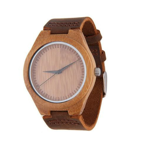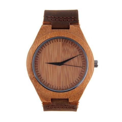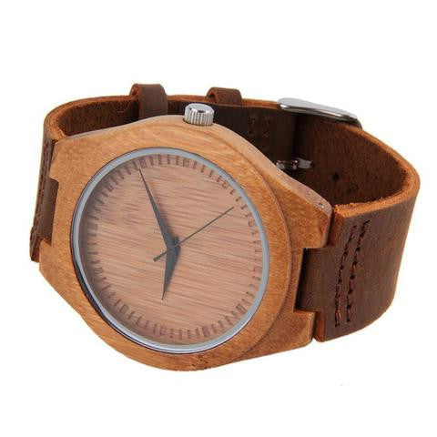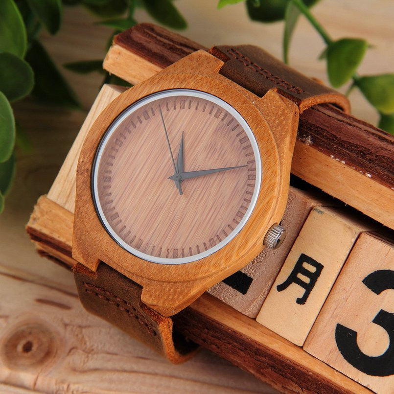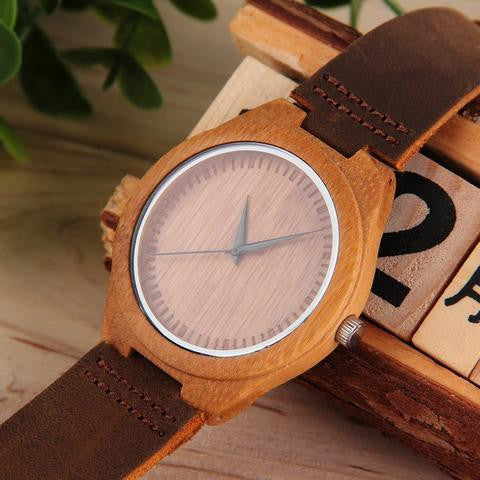 Luxury Men's Women's Bamboo Wood Watch Quartz PU Leather Wristwatches