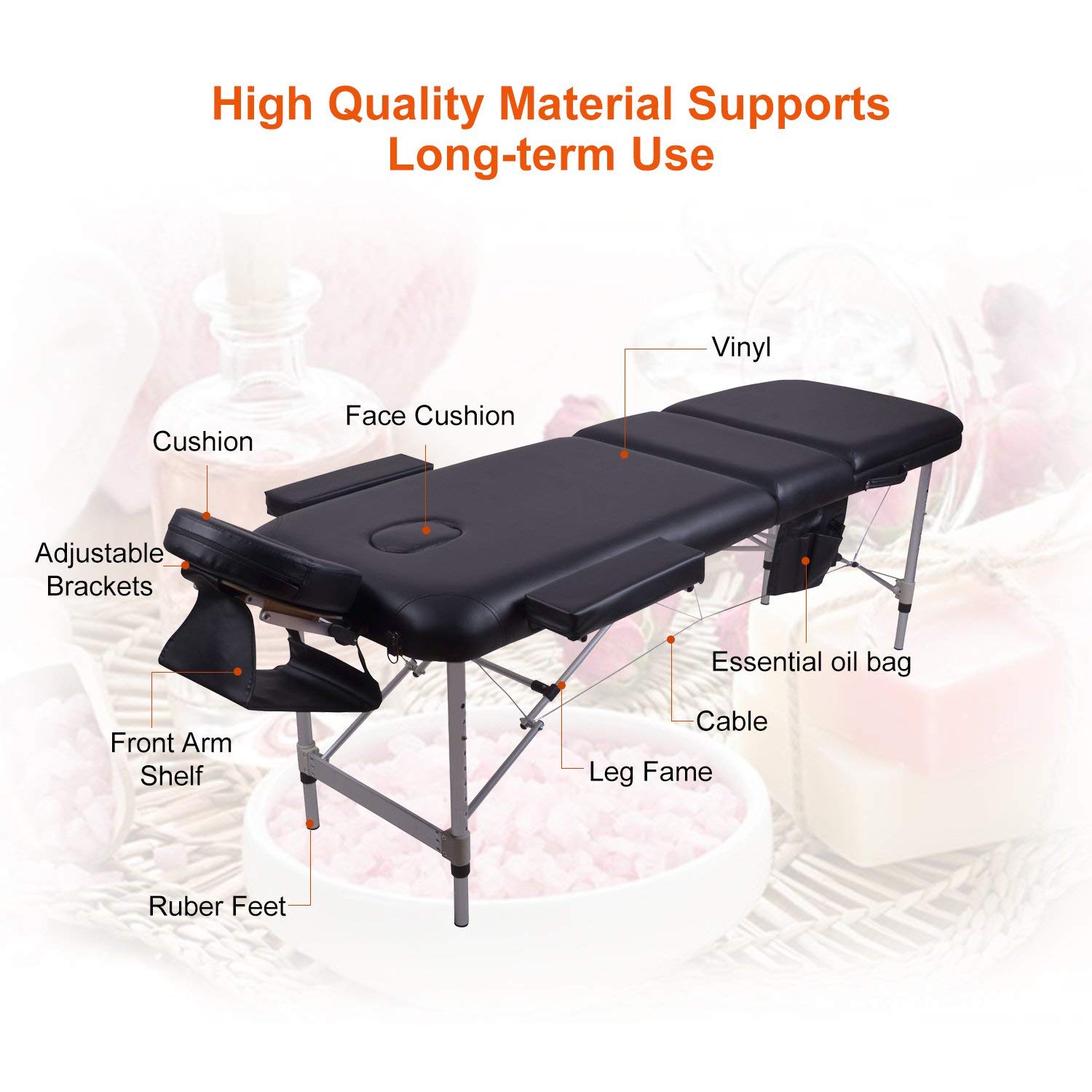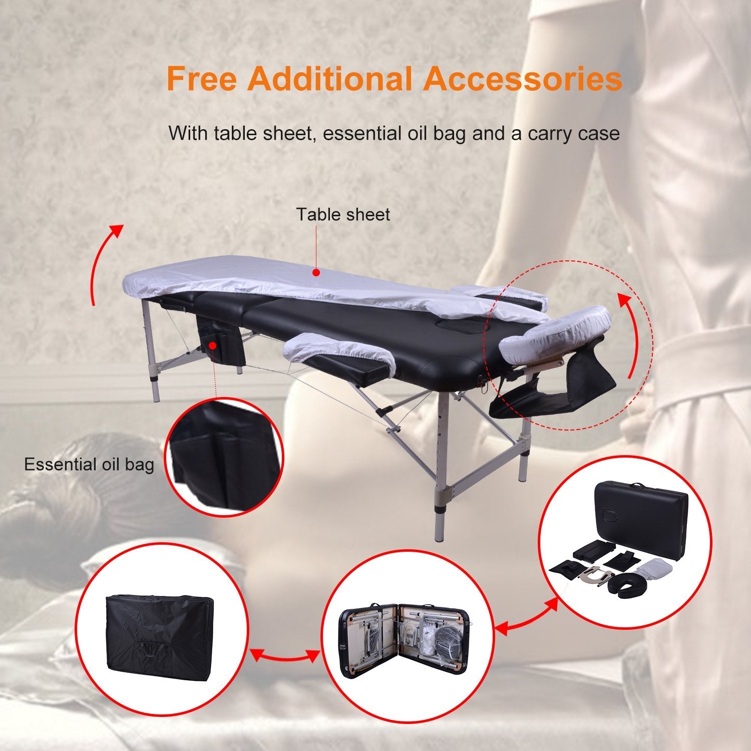- Additional Accessories: With detachable headrest, table sheet, essential oil bag and a free carry case